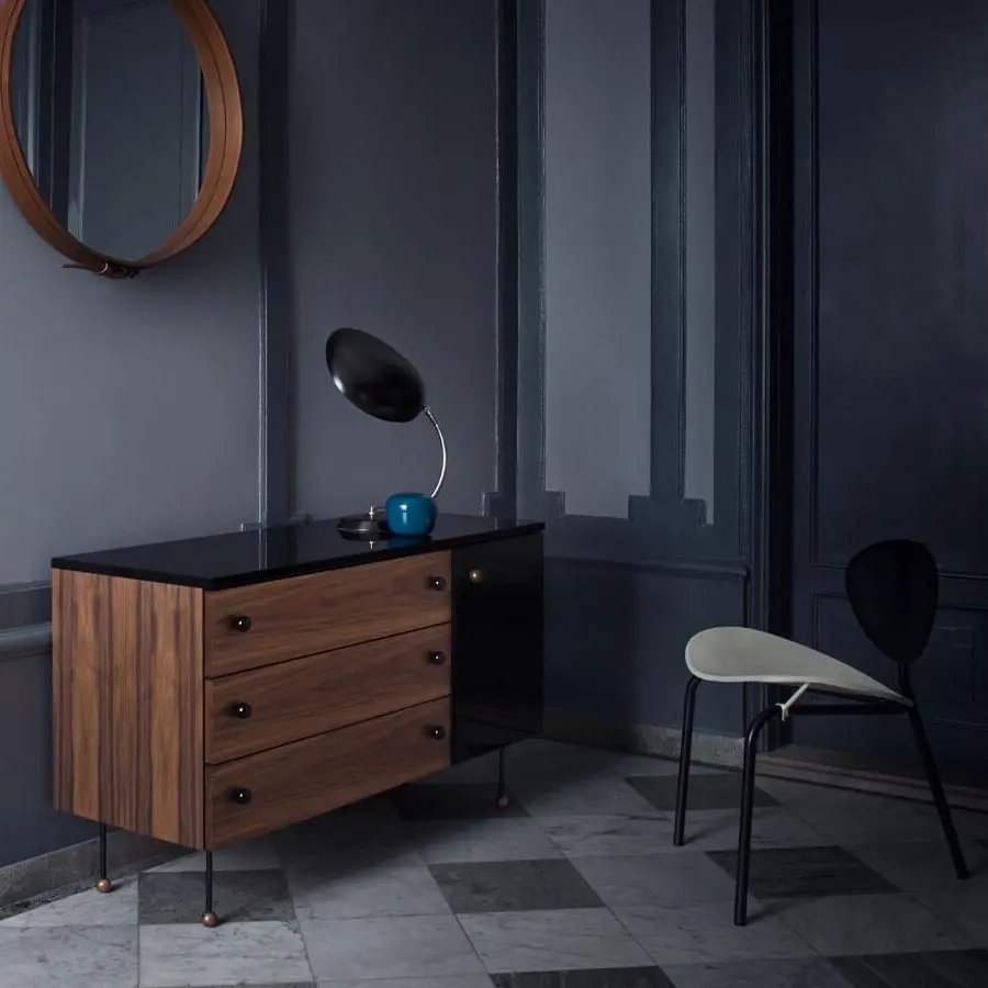Swedish-born designer Greta Grossman was influenced by European Modernism, which had been brought to the United States by influential architects such as Walter Gropius (founder of the Bauhaus) and Ludwig Mies van der Rohe. Grossman played a significant role in defining the aesthetic of mid-century California Modernism. Today, her designs are highly collectible and sold at design auctions worldwide due to their unique blend of modern and classic style. The Grossman Gubi Chest of Drawers is suitable for use in both the living room and bedroom.