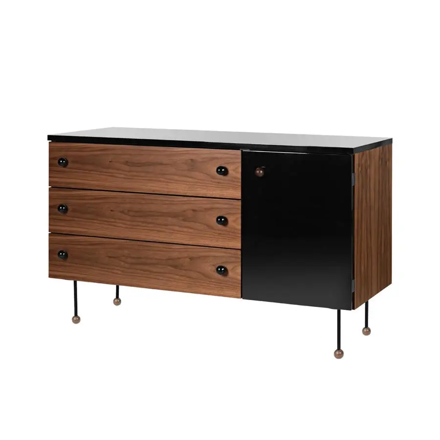 Swedish-born designer Greta Grossman was influenced by European Modernism, which had been brought to the United States by influential architects such as Walter Gropius (founder of the Bauhaus) and Ludwig Mies van der Rohe. Grossman played a significant role in defining the aesthetic of mid-century California Modernism. Today, her designs are highly collectible and sold at design auctions worldwide due to their unique blend of modern and classic style. The Grossman Gubi Chest of Drawers is suitable for use in both the living room and bedroom.