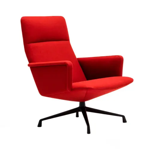 Sutton is an armchair with rounded lines and an easy-to-understand, curvilinear design; everything about it is harmonious. It is soft, elegant, and comfortable. Its legs emerge from the upholstered frame and gradually taper to the floor, as if only touching it as much as necessary to maintain its lightness. The most contemporary design, based on pure, straight lines, gives it a sober and modern character. Soho is conceived as an armchair adaptable to all types of environments, whether professional or residential. Two basic versions of the armchair are available: a lower one for a 65 cm high table and a taller one for a 73 cm high table.