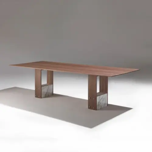 Sendo' means 'robust' in Basque and is the name of the new dining table designed by Ibon Arrizabalaga. It is available in different sizes and two versions, one fixed and one extendable. Its uniqueness lies in the marked contrast between the countertop (wide and agile, designed to convey a great sense of lightness) and the feet, vigorous pieces of wood. The countertop can be customized in all Treku woods and in phoenix finish.