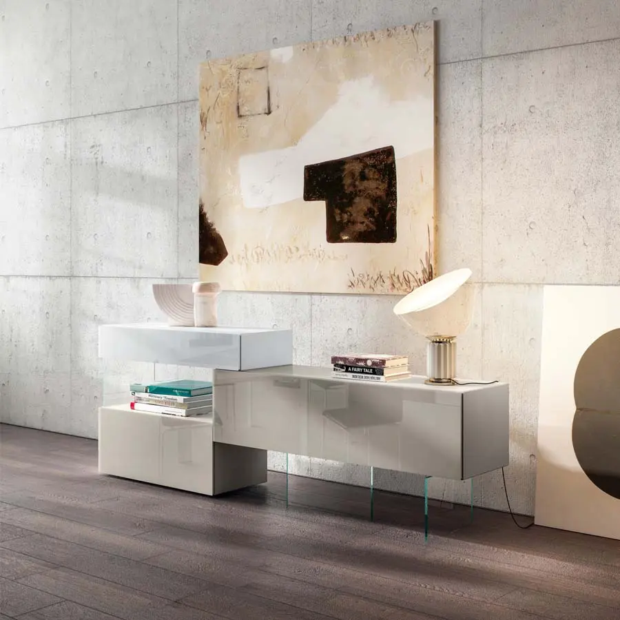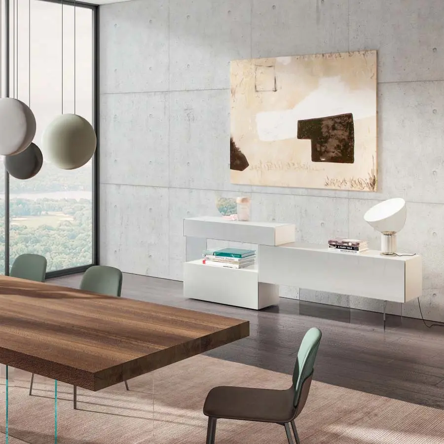Gracias a la modularidad del sistema 36e8 nacen originales aparadores personalizables en tamaño, formas y colores, que resuelven cualquier exigencia de almacenaje para cualquier contexto y estilo. Volúmenes monolíticos o desestructurados, suspendidos o apoyados; pueden integrar almacenadores totalmente en cristal y Wall panels haciendo todavía más amplias las posibilidades a la hora de proyectar. La original junta en aluminio con trabajado a 45º, la puerta perfilada y el lacado interior junto a materiales como la madera Wildwood, el cristal tintado o el mármol, metal, madera y tejido XGlass dan fe de la excelencia constructiva de un producto extremadamente duradero.