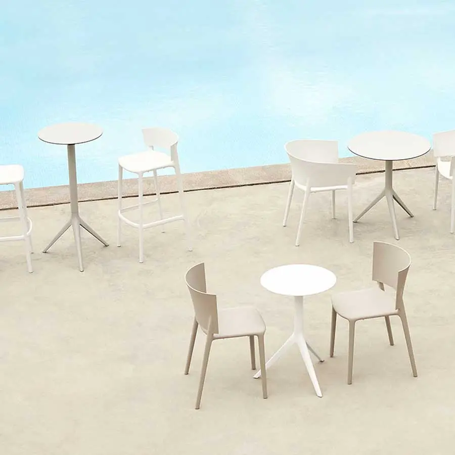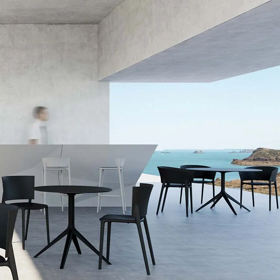 Fabricado en polipropileno por inyección con gas y reforzado con fibra de vidrio. Apilable. Disponible en varios colores. Apto para uso interior y exterior. Además el acabado Vondom Revolution está fabricado con plástico reciclado del mediterráneo.