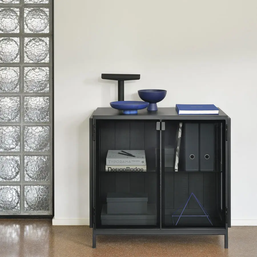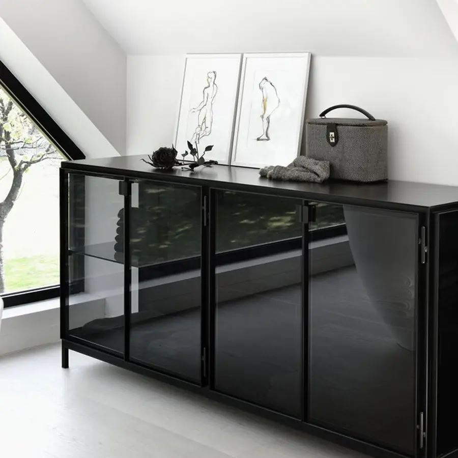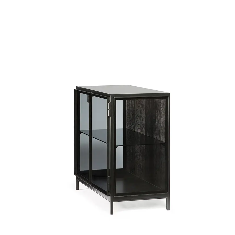 Las vitrininas Anders de Ethnicraft se distancia de su estética habitual, pero sin perder su esencia. Un marco negro sólido contrasta maravillosamente con la superficie de vidrio. Dpara darle un nuevo giro a los aparadores tradicionales. Las puertas de vidrio son la característica de definición, y los estantes amplios maximizan las opciones de almacenamiento y visualización. Disponible en dos medidas.