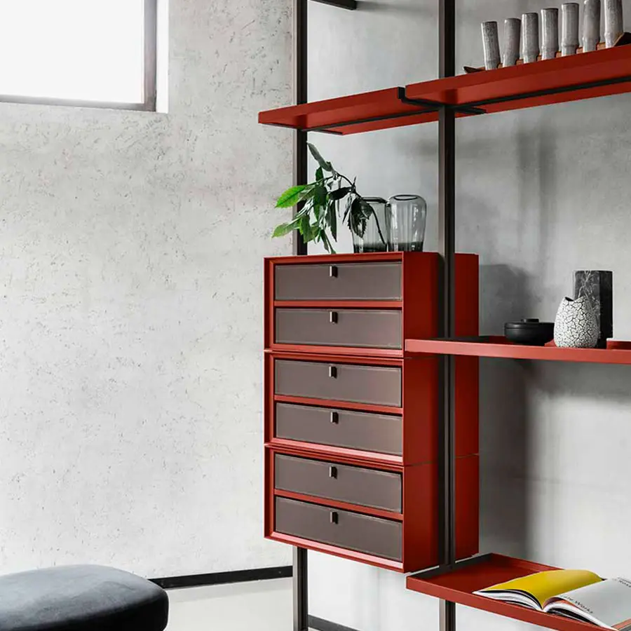 ANTIS es un sistema de librería para la zona de día caracterizado por la posibilidad de elegir libremente la altura y la posición de los elementos, permitiendo crear diversas confguraciones. Cada elemento Antis se puede colocar con libertad, en la cantidad deseada y a la altura preferida.
