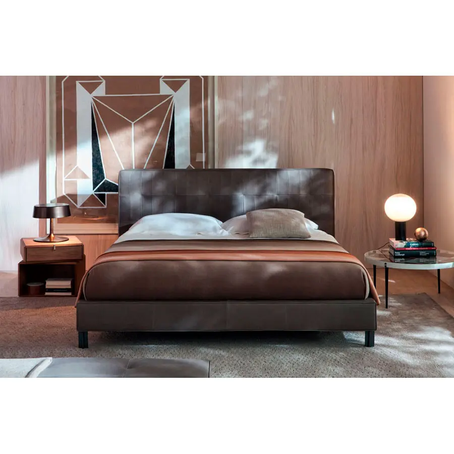 Volúmenes que se enfatizan gracias a un tipo particular de costura utilizada para la cabecera, el capitoné, revisada de manera contemporánea. Pies terminados en peltre. Tapicería que se puede desmontar por completo en la gama Molteni & C de cuero y textiles. Anton se puede combinar con un banco con acabados de marco idénticos y tapicería a juego.