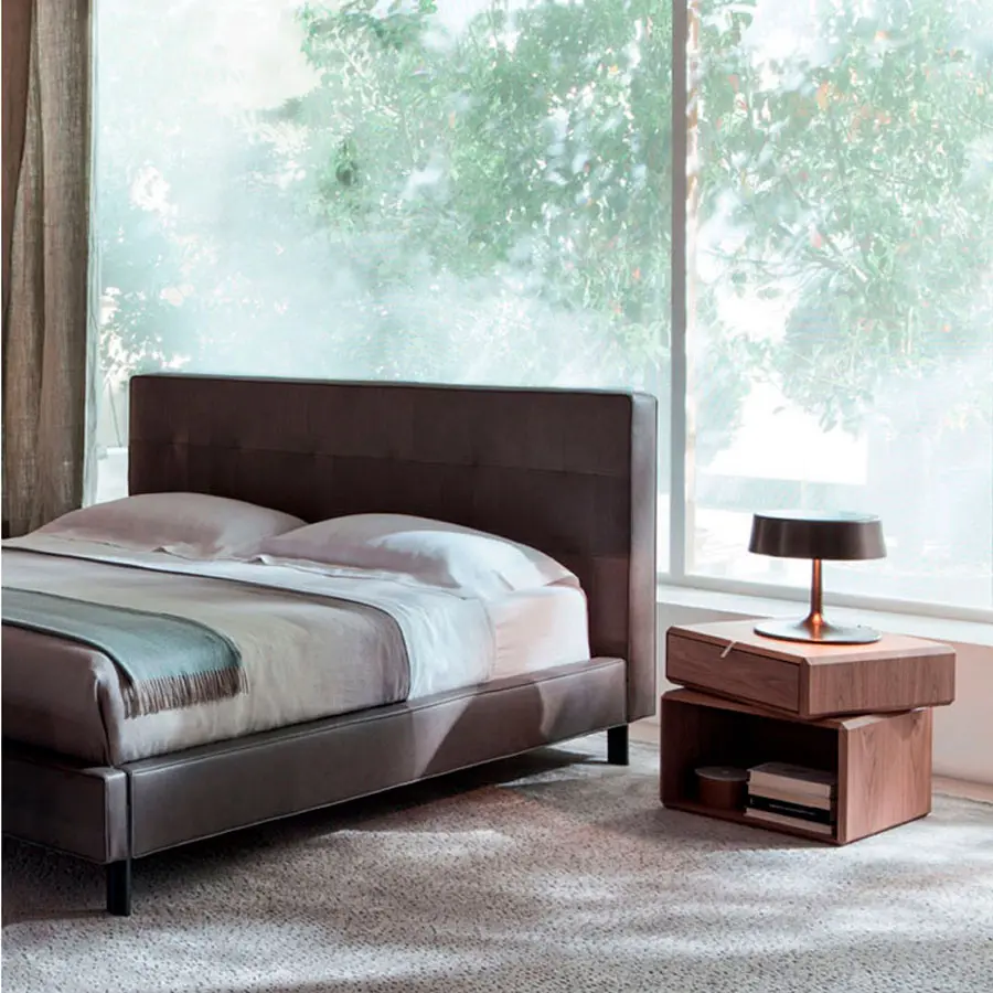 Una cama que se incorpora perfectamente a la filosofía de diseño de Vincent Van Duysen, donde la esencialidad y el estudio de los materiales utilizados alcanzan una síntesis perfecta. Líneas delicadas pero netas, para un equilibrio estético armonioso, resultado de la reducción de todo elemento superfluo.