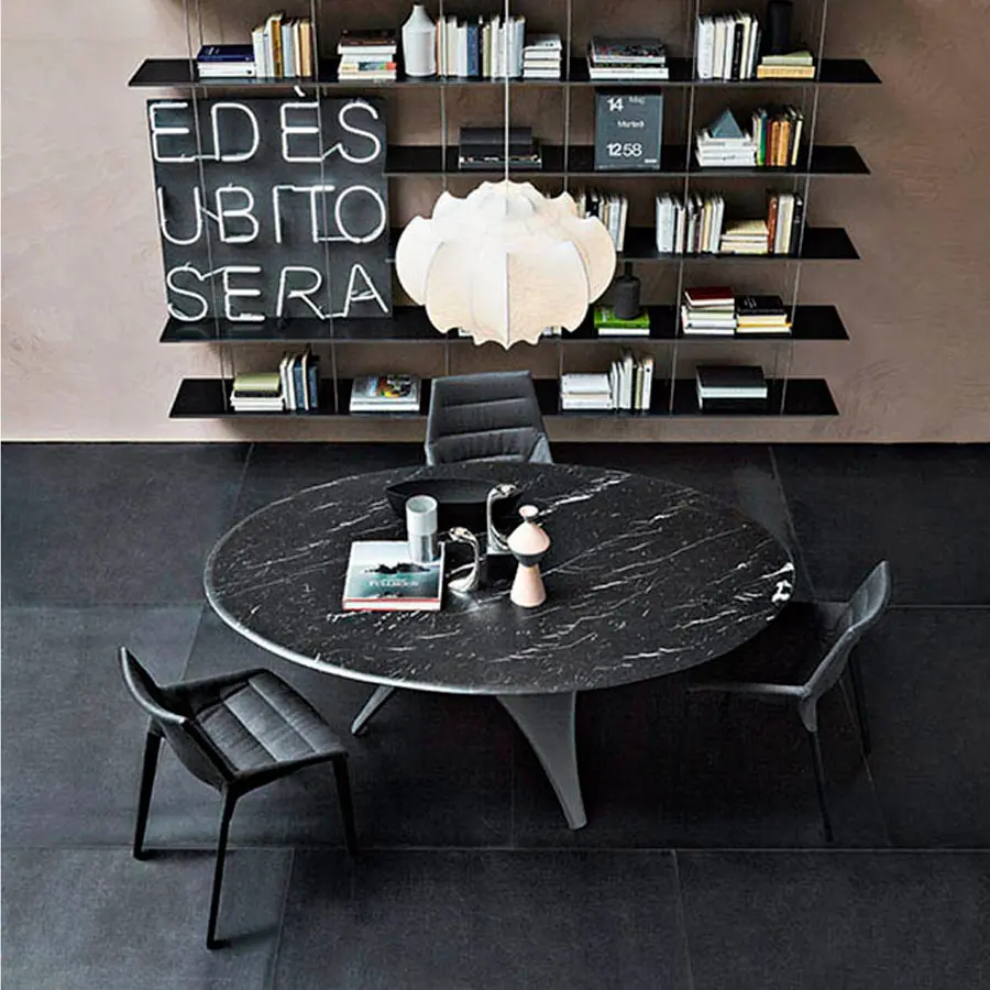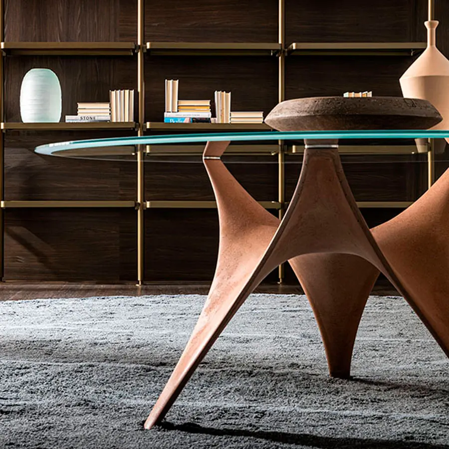 La mesa ARC se caracteriza por su ligereza, arquitectura contemporánea. Es una mesa escultura. La base está fabricada con un material innovador que mezcla cemento y fibras orgánicas .