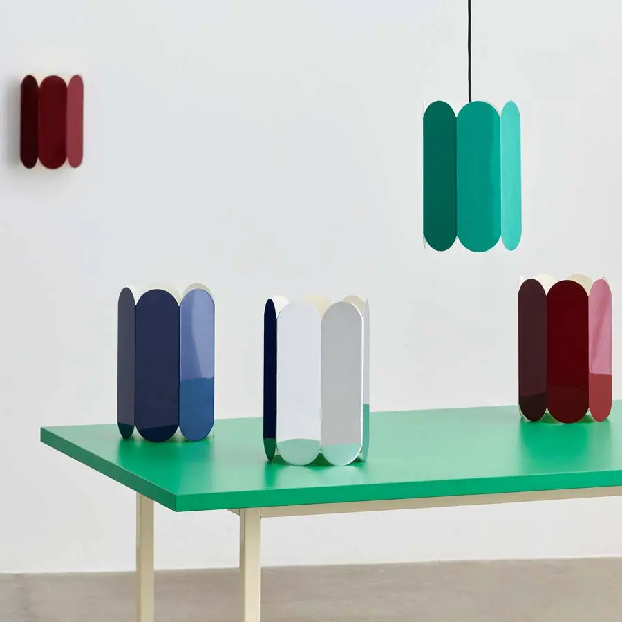 La lámpara de pared Arcs forma parte de una serie de diseños arqueados creados para HAY por el dúo belga Muller Van Severen. Formada a partir de una cadena continua de arcos curvos que crean una silueta elegante y festoneada, la lámpara proporciona una luz ambiental suave hacia arriba y hacia abajo que juega con formas y sombras. La lámpara es fácil de montar y está disponible en dos variantes de pared, lo que ofrece opciones de instalación flexibles con una selección de cables de alimentación integrados e independientes. Arcs está fabricado en acero macizo y está disponible en varios colores diferentes o con superficie de espejo. Las diferentes soluciones de montaje confieren a la lámpara una calidad versátil, haciéndola adecuada para pasillos y espacios grandes, así como lámpara de noche o en pequeños rincones.