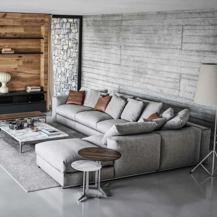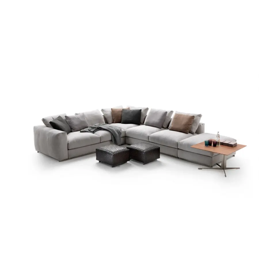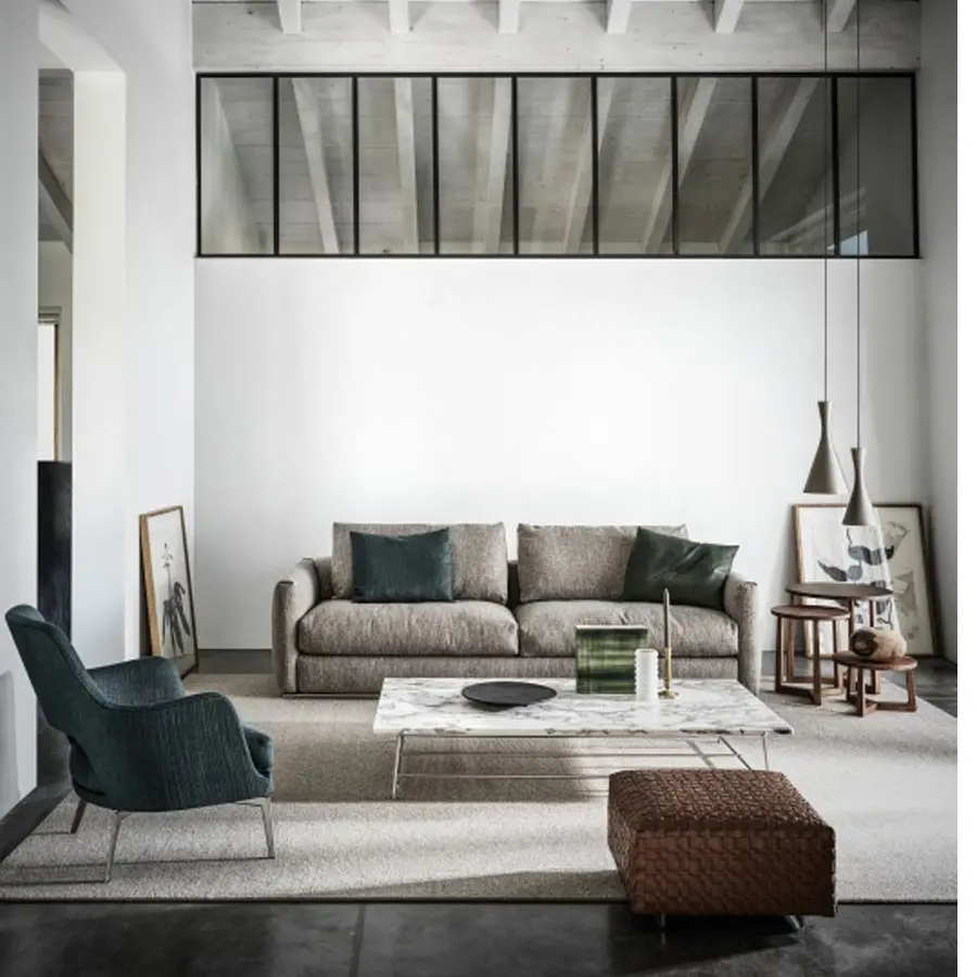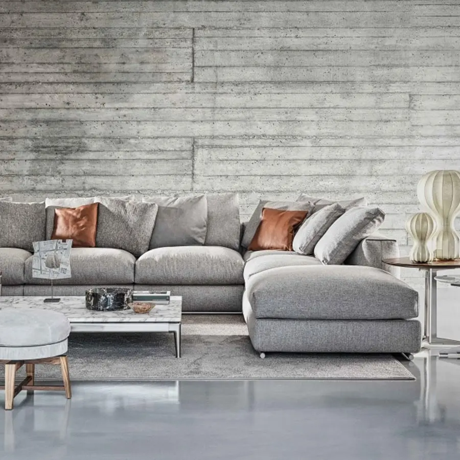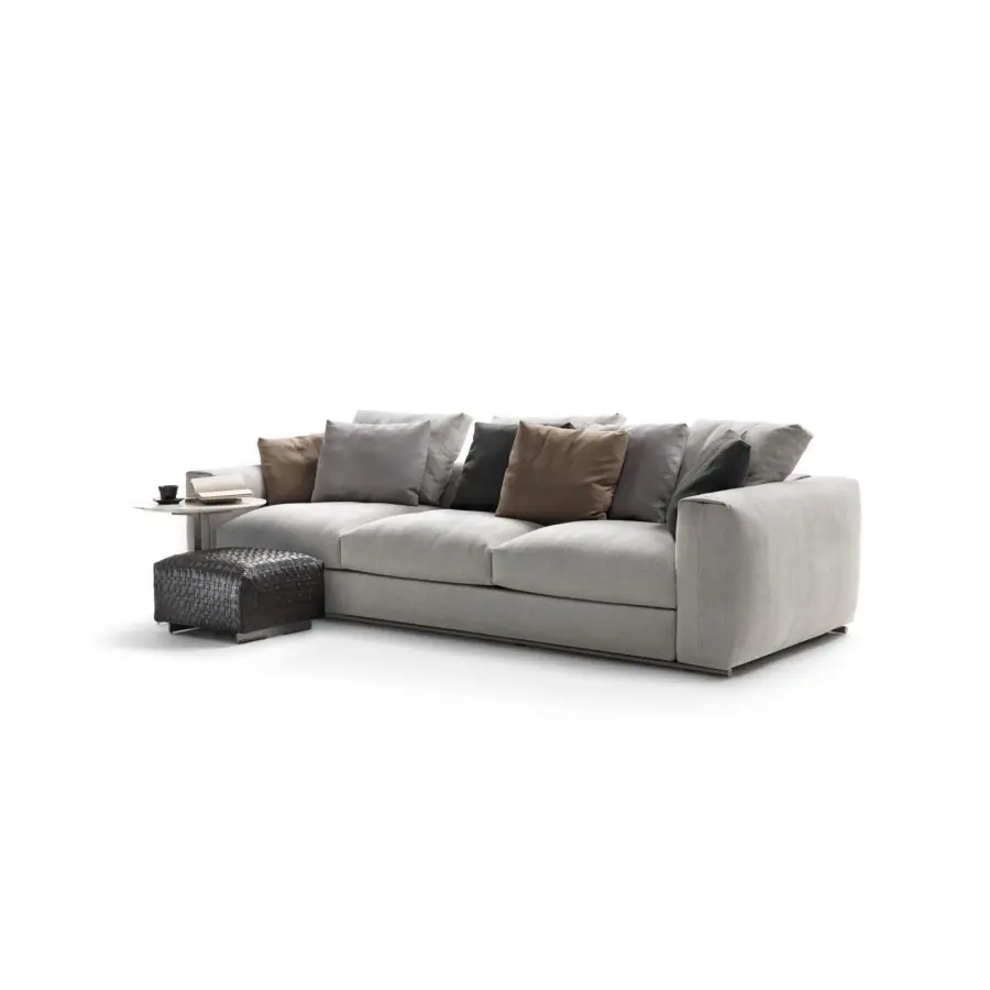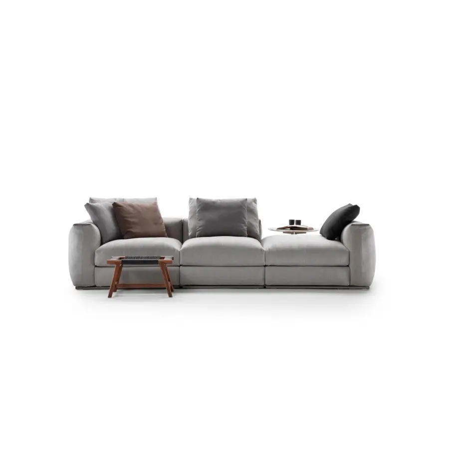 El sofá Asolo ha sido diseñado para ofrecer una experiencia de gran confort. Sus proporciones generosas y a la vez equilibradas, la confección artesanal de la tapicería y la atención a los detalles de construcción son características típicas del estilo Flexform por excelencia, caracterizado por una elegancia relajada.