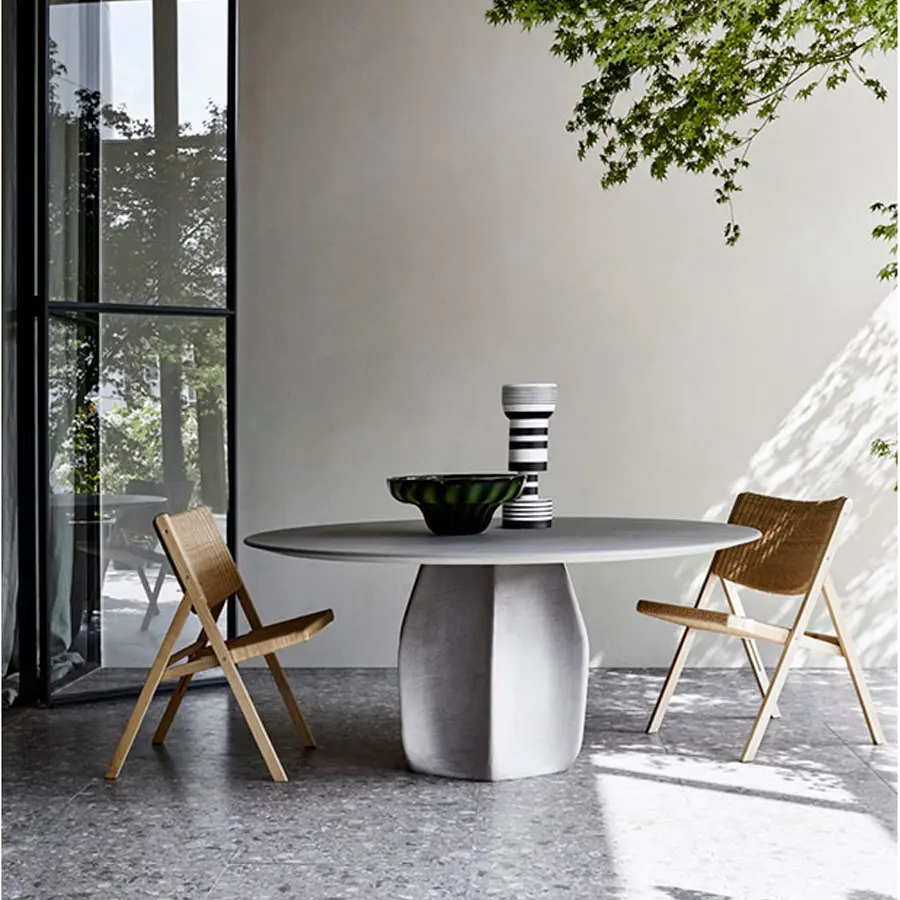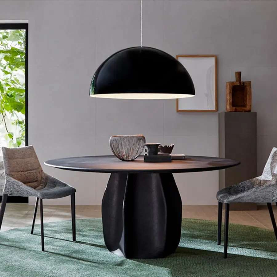 Asterias, planta cactácea originaria de las zonas montañosas de México, da el nombre a este nuevo proyecto de Patricia Urquiola. Una mesa redonda de tamaño generoso, caracterizada por una base central que recuerda el cactus del que toma el nombre. Se compone justamente de seis paneles de madera curvada, en forma de gajo, aplicados en saliente en el plinto central. Los paneles están realizados con la peculiar técnica de la impresión 3D. El sobre (160 o 180 cm), de borde redondeado, en versión en madera está repartido en tres gajos que plasman un interesante diseño geométrico. Además, la mesa dispone de un accesorio práctico: un plato giratorio central (Lazy Susan), muy apreciado en los países asiáticos.