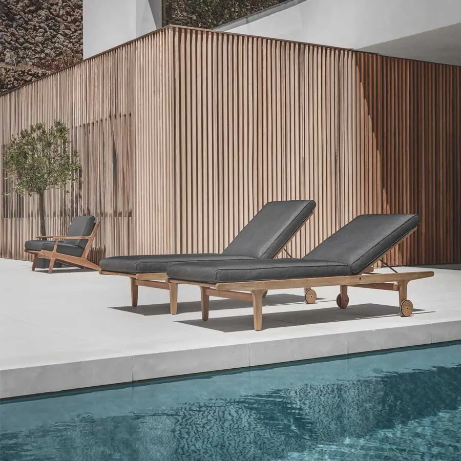 ¿Puedes recordar esa sensación de escapar? De finalmente recostarse, olvidar tus preocupaciones y mirar hacia el agua hacia el sol que se pone. Henrik Pedersen se propuso capturar la sensación de sentarse junto a la costa al diseñar la colección Bay. La posición reclinada enfatiza un estado de ánimo introspectivo y relajado y tiene la intención de crear una sensación de estar en reposo en un refugio seguro.