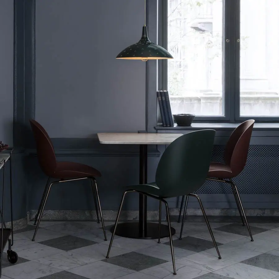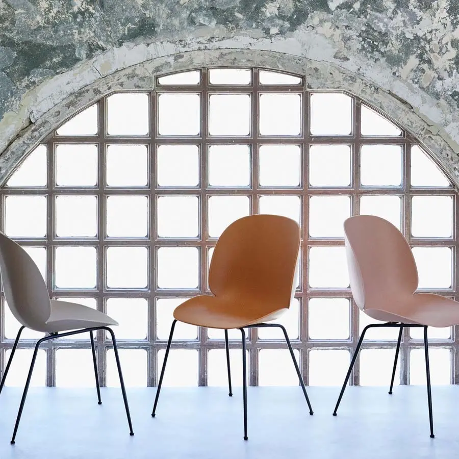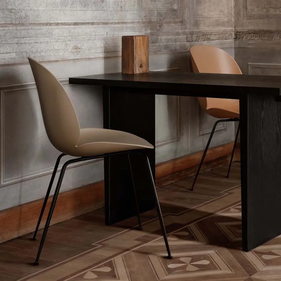 GamFratesi se inspiró en el humilde escarabajo para diseñar esta silla. Estudiando la anatomía y el movimiento de estos pequeños insectos, los diseñadores crearon una forma única para la carcasa de la silla. Estas sillas elegantes y refinadas funcionan perfectamente alrededor de una mesa de comedor, ofreciendo asientos para la familia y los invitados durante muchos años. También están disponibles tapizadas, o con estructura de madera.