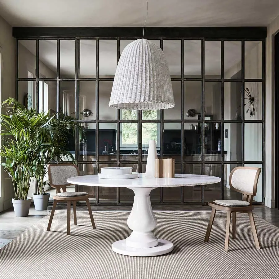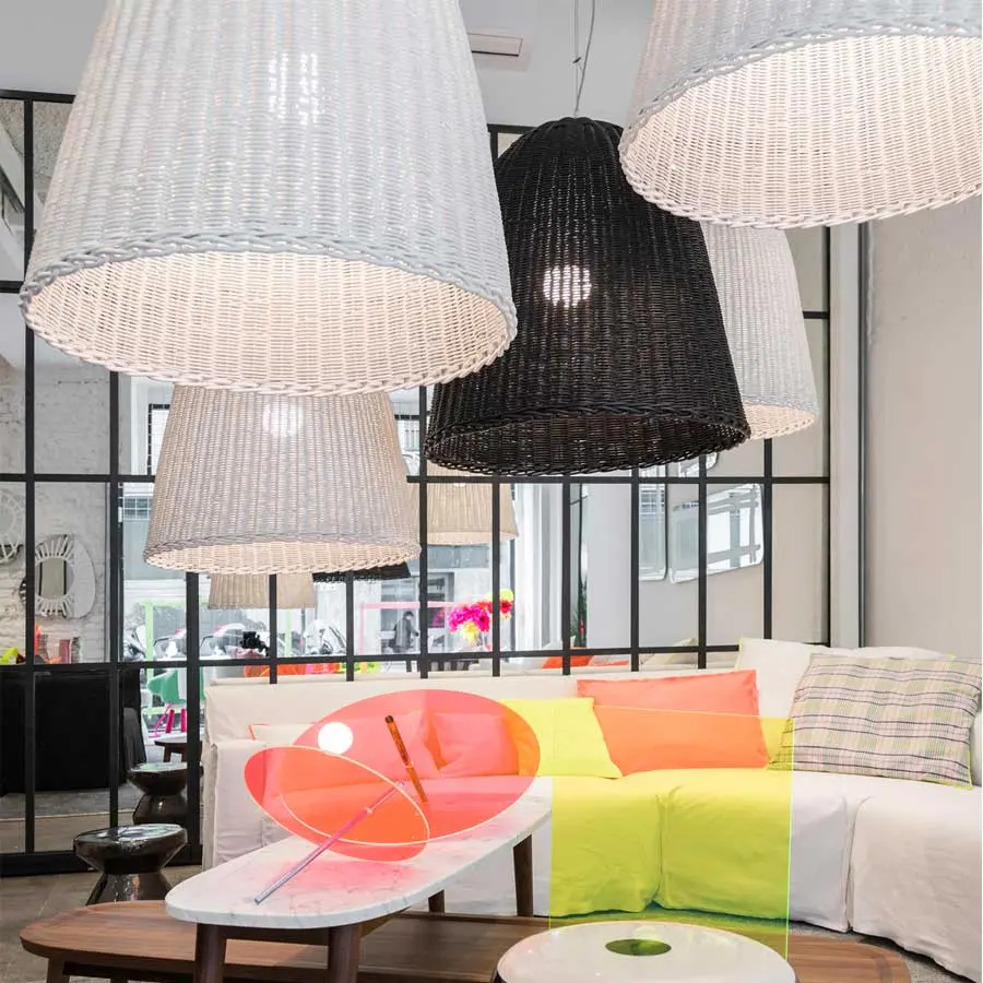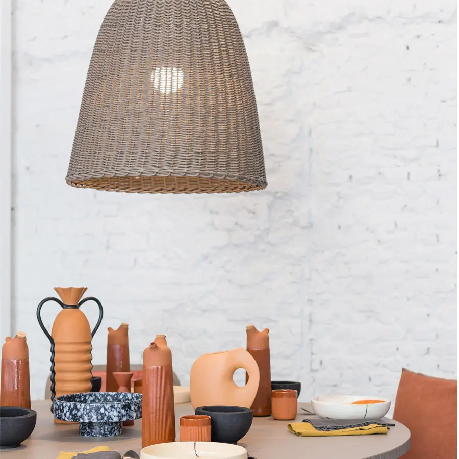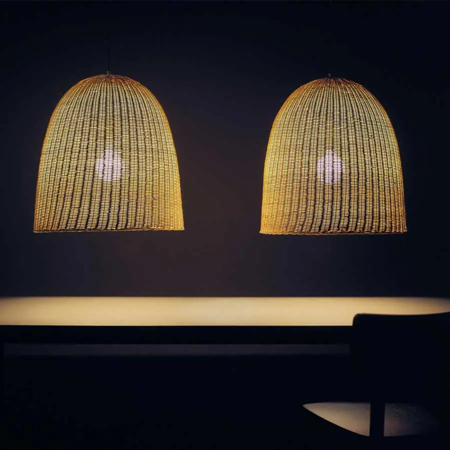 El encanto de los materiales naturales hace única a la lámpara colgante Bell, realizada en mimbre tejido a mano. Un producto que remite a sugestiones exóticas, recuperando una elaboración tradicional reinterpretada en clave contemporánea, que puede utilizarse individualmente o en serie para crear más puntos de luz y realzar el ambiente. Disponible en mimbre tejido natural mélange o lacado en blanco mate, gris, negro, océano o tórtola.