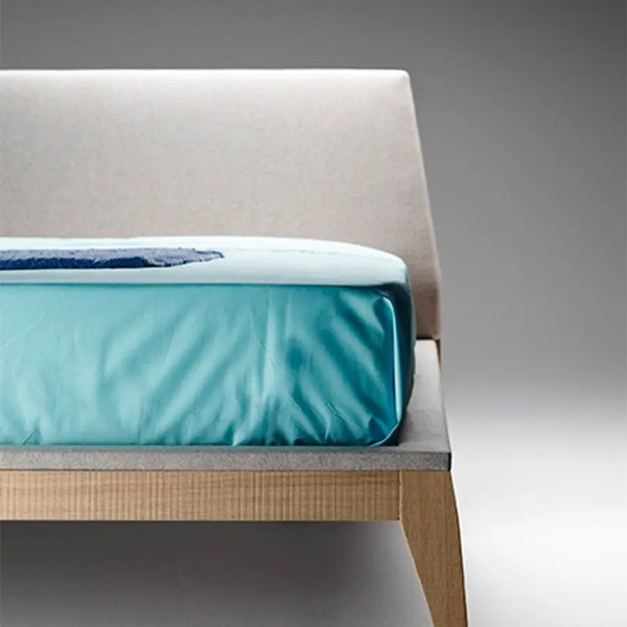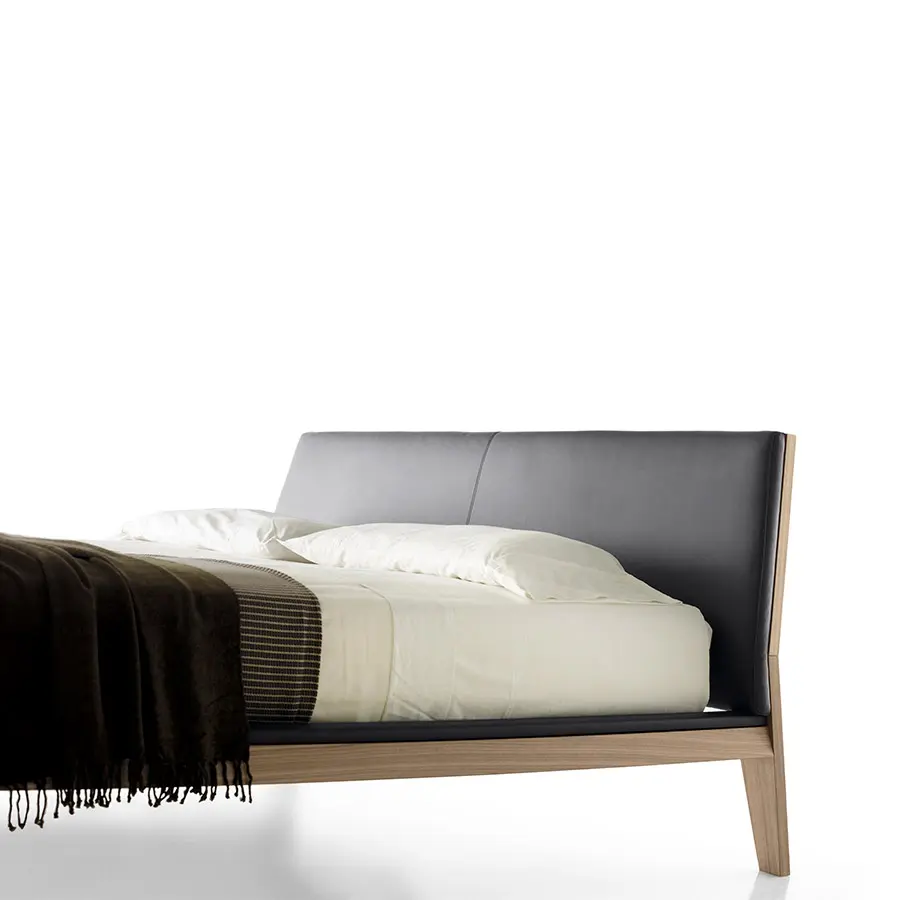 La cama Bel es un trabajo de ebanistería, casi escultórico. Su estructura de madera maciza le aporta la rigidez necesaria, y su cabecero acolchado, asegura una cómoda posición de lectura. Tanto el cabecero como la parte superior de la estructura, se pueden tapizar en cualquiera de nuestras telas o pieles. El modelo se completa con la colección de mesillas de Treku.