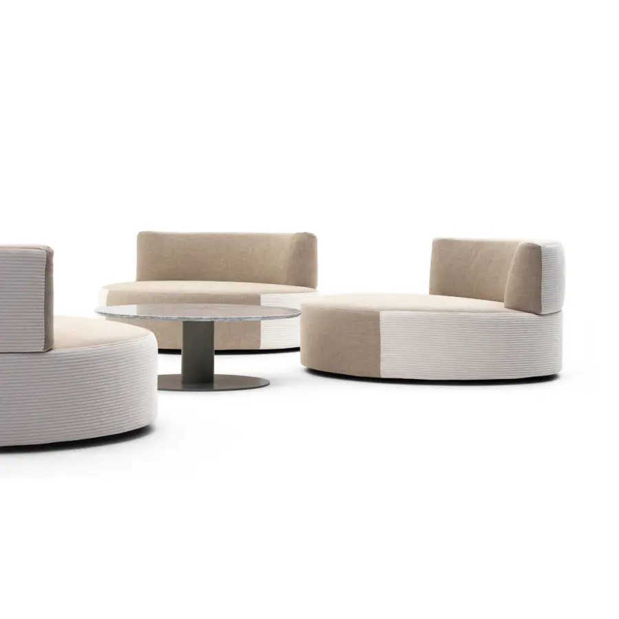 Belt es un sillón moderno y elegante: la forma circular es el resultado de un diseño original y hace que la estructura sea cómoda. El estilo versátil lo convierte en un asiento ideal para entornos contract como hoteles y tiendas, pero también para terrazas o jardines privados.