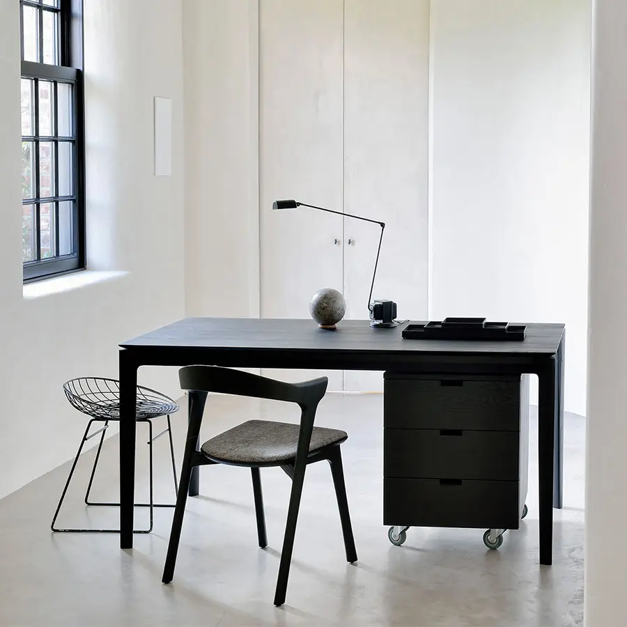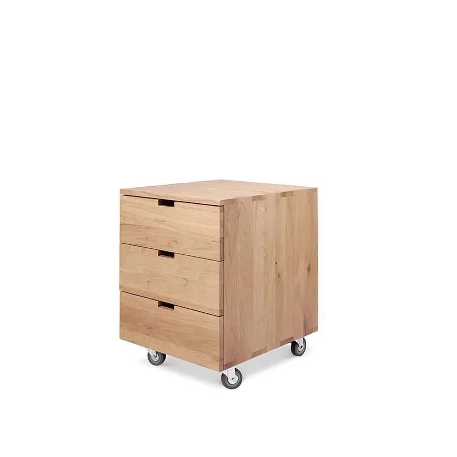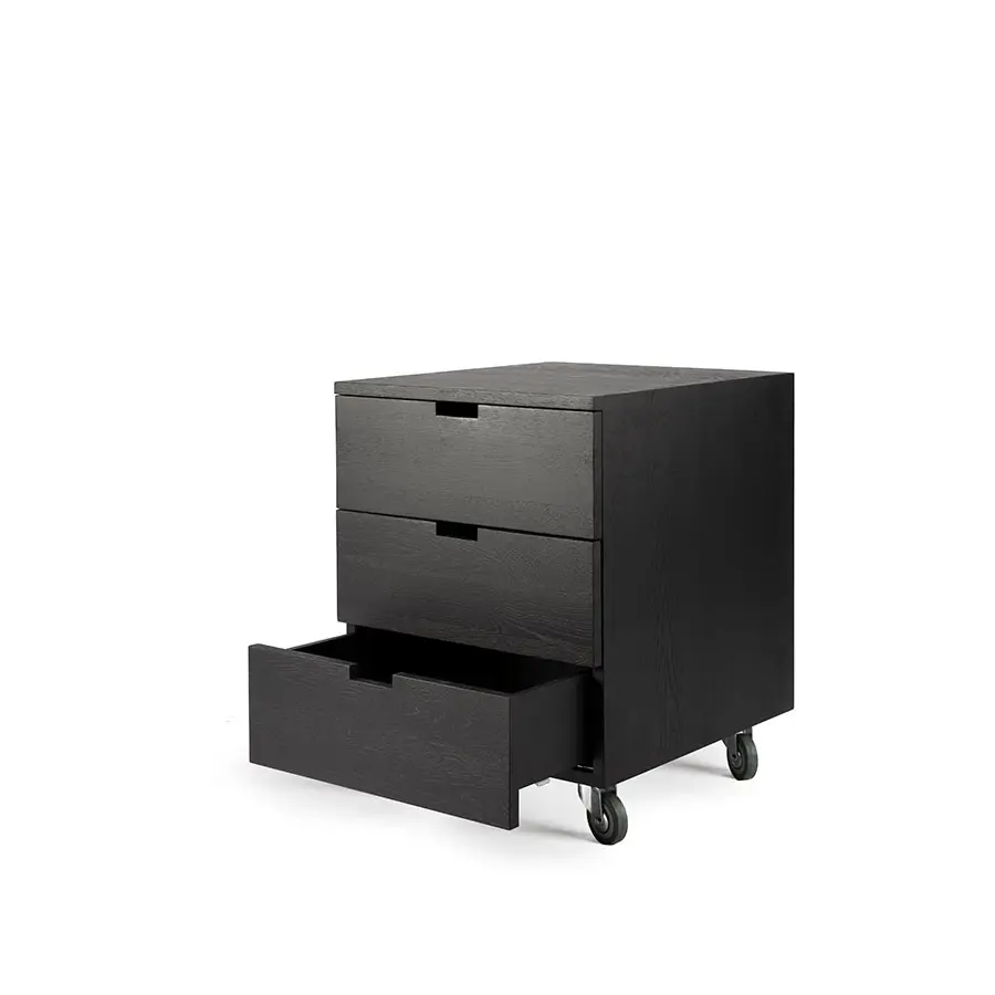 Organiza tu espacio de trabajo con la cajonera Billy. Cuenta con 3 cajones de cierre suave y fácil acceso gracias a las prácticas ruedas. Solo o debajo de un escritorio, es el elemento básico simple que toda oficina necesita. Disponible en madera maciza de roble natural o teñida en negro.