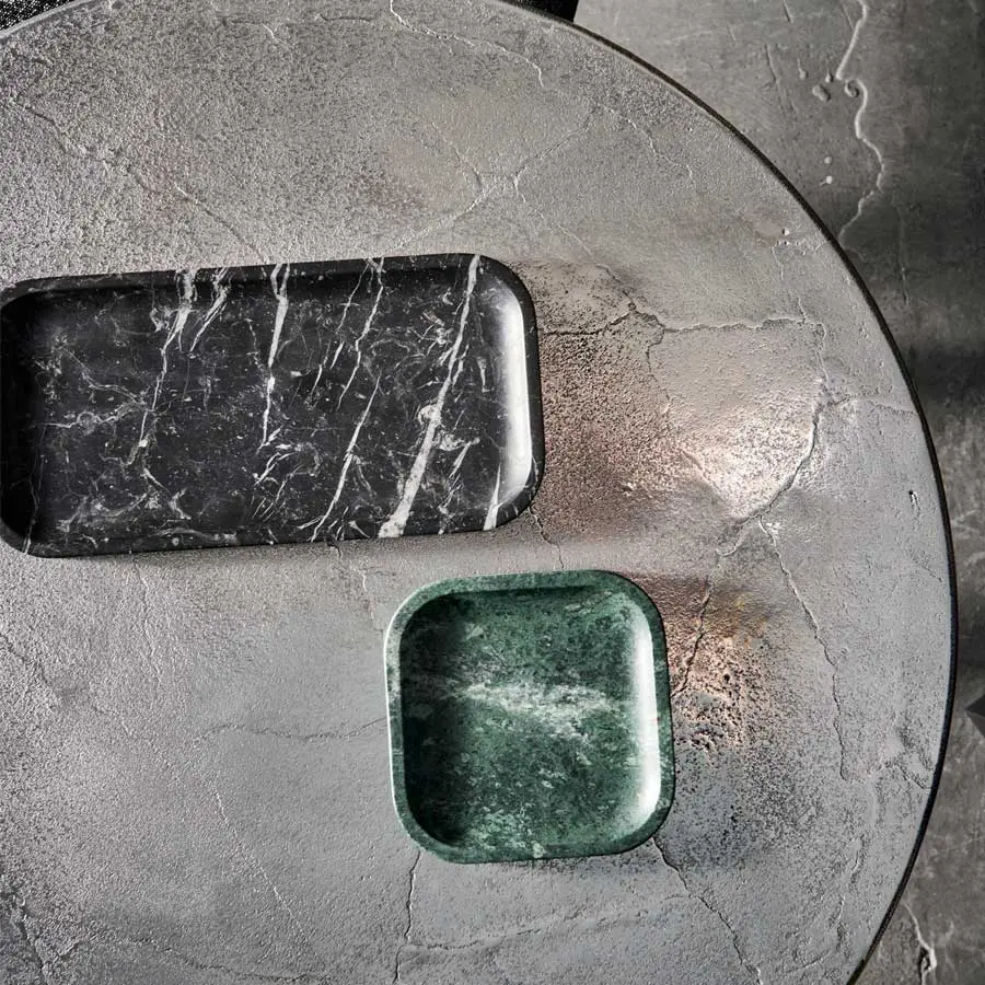El espíritu ecléctico de Gervasoni es muy evidente en la familia de mesas de centro BRASS, caracterizadas por una imagen escultórica. Están realizadas con la base en fundición de hierro, una columna de haya teñida de ébano, y un tablero disponible en fundición de aluminio o latón brillante, materiales que muestran una capacidad de embellecer los interiores gracias a sus reflejos luminosos fríos y plateados o cálidos y dorados. Están disponibles en diferentes tamaños y alturas.