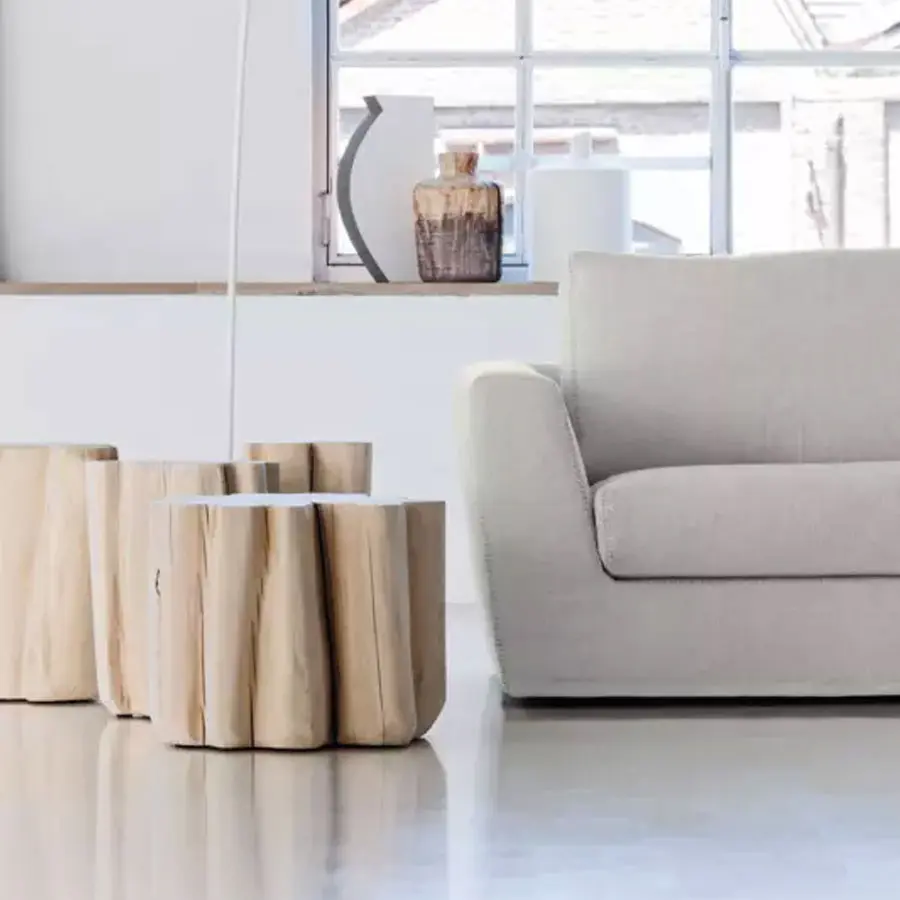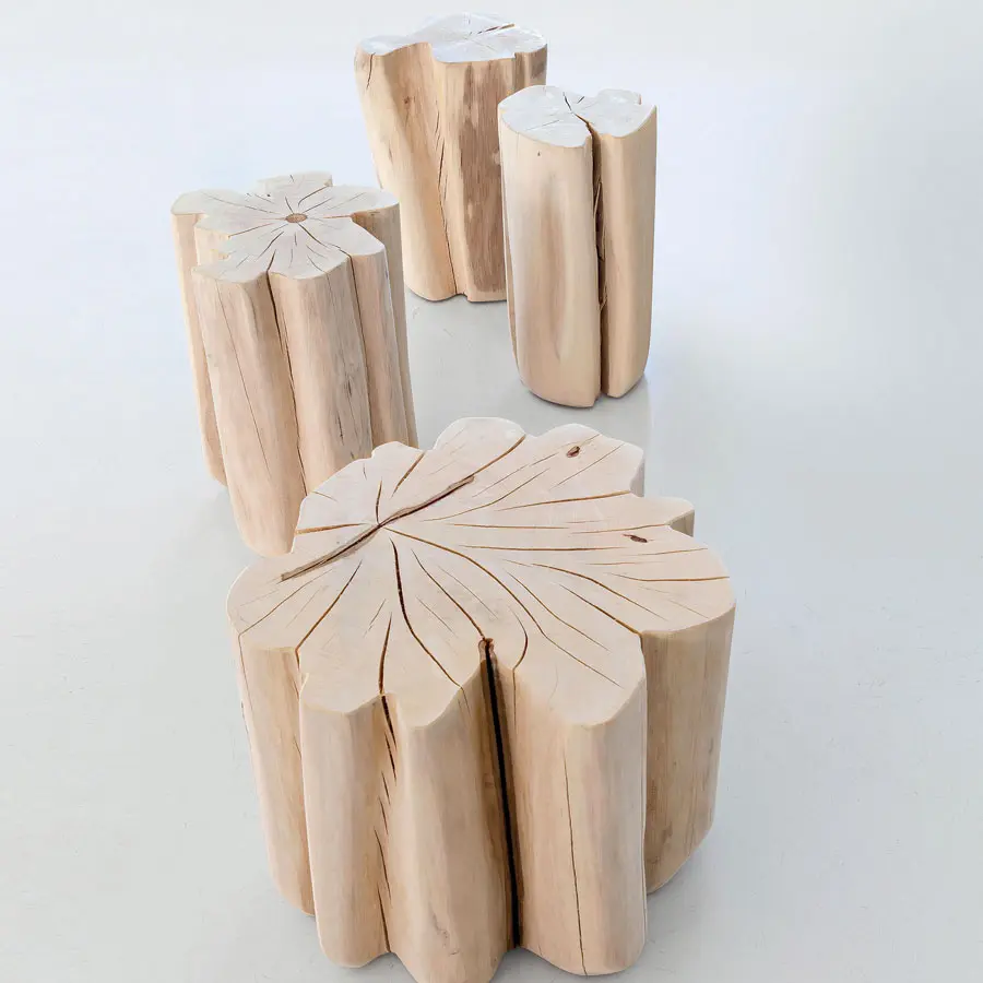 Familia de pufs de atractivos nórdicos, Brick XS/S/M/L están realizados con una sección de tronco de carpe descortezado. Disponibles en diferentes alturas y diámetros, son productos con un atractivo contemporáneo, que apuntan a resaltar la naturaleza de la madera.