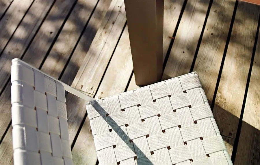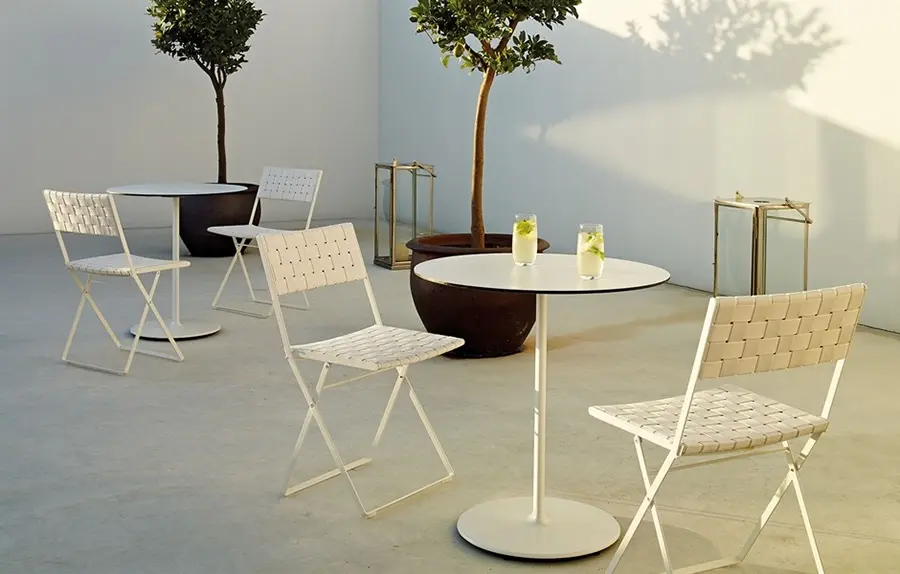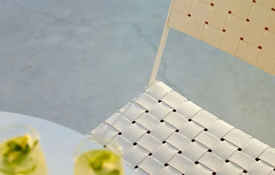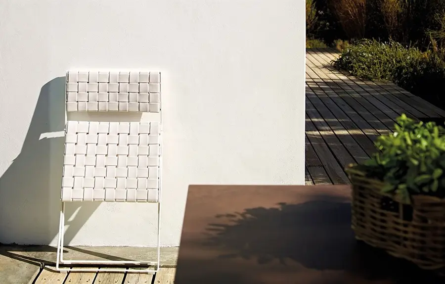 Brisa es una silla plegable con estructura de acero y tratamiento exterior EPL-5, disponible en blanco o marrón tierra. Las bandas tejidas en el asiento y el respaldo están disponibles en varios colores. Elegante y divertida, esta pieza agrega una cálida nota de color a los espacios interiores y exteriores. Su ligereza, simplicidad y durabilidad se presta para su uso en espacios de interacción, integrándose perfectamente en todos los ambientes al aire libre.