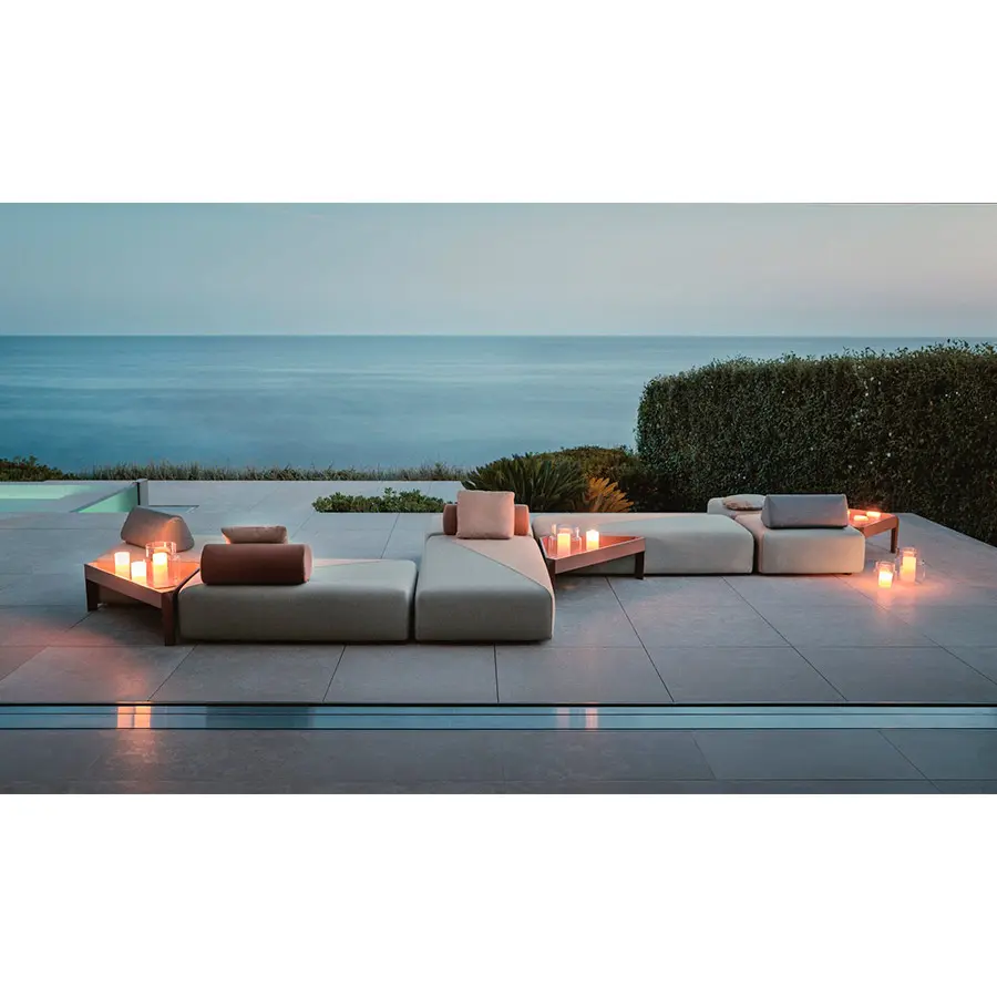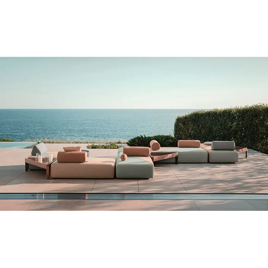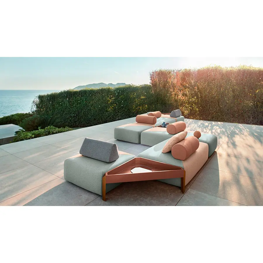 BRIXX de Lorenza Bozzoli, la primera colección completamente tapizada de DEDON, permite construir islas de lujoso confort tanto dentro como fuera. Sencillo a la par que sofisticado, natural pero refinado, este flexible sistema de módulos rectangulares está disponible con o sin respaldos fijos o en una combinación de ambos.