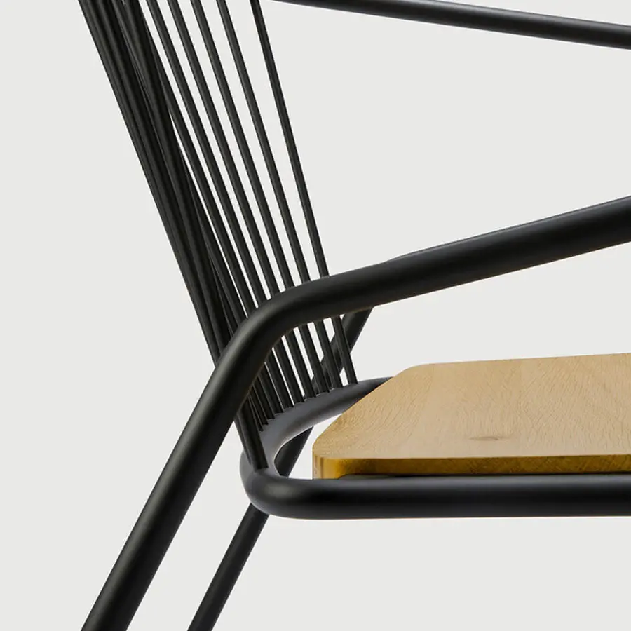 La silla Gabbia tiene un diseño único: sus grandes proporciones son perfectas para brindarle una experiencia confortable. La ligera estructura metálica curvada que rodea el asientos de madera, le da su aspecto particular. Un compañero elegante para cualquier hogar.