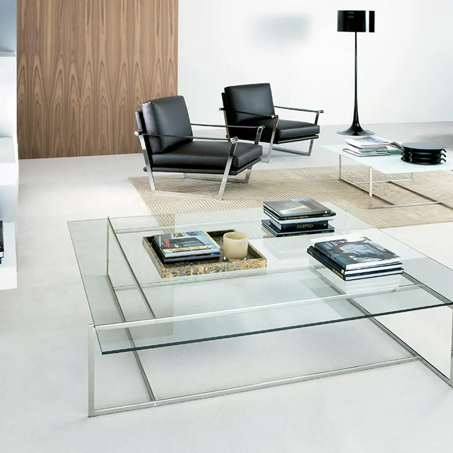 La mesa C-Table no es más que un claro guiño de complicidad a todos aquellos que pertenecieron a la idolatrada escuela alemana Bauhaus. Su ligera estructura de metal inoxidable le confiere un aire actual sea cual sea el acabado del cristal que se le aplique. Disponible en numerosas medidas, ya sea rectangular o cuadrada, permite que sea utilizada como mesa de centro o lateral al sofá.