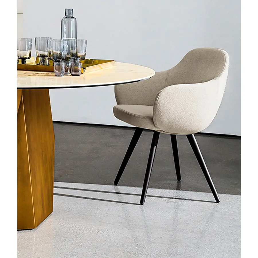 La silla Cadira tiene un asiento con una forma envolvente y cómoda que combina con elegancia y sencillez en cualquier estilo de mesa. Disponible en distintos tapizados: piel, polipiel, tela o terciopelo. Es una silla ideal tanto para hogar como para ambientes de trabajo.