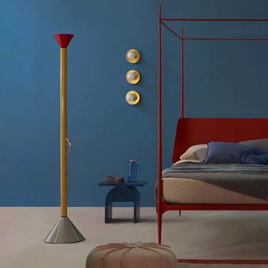 Colores, geometrías y detalles como el asa hacen de Callimaco una de las piezas icónicas del Design Radical de Sottsass que eleva la investigación artística y conceptual en objetos cotidianos, convirtiéndolos en obras fuera de lo común. El difusor es siempre cónico de aluminio y alberga una fuente de luz LED (incluida) con fuente de luz regulable.
