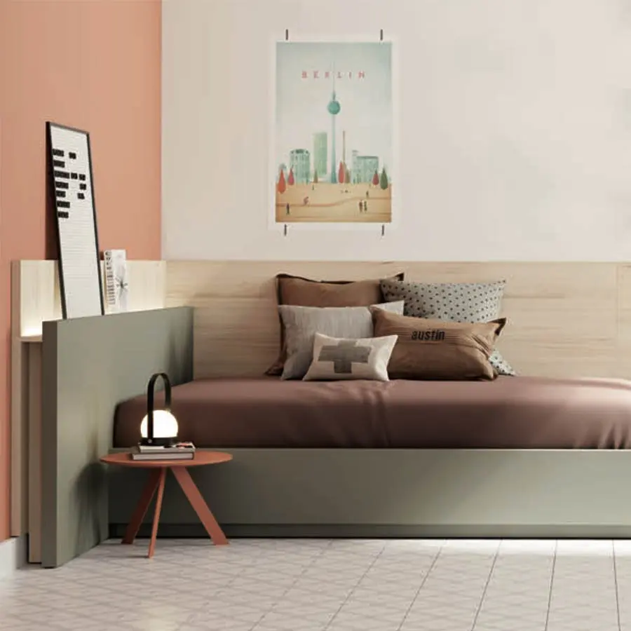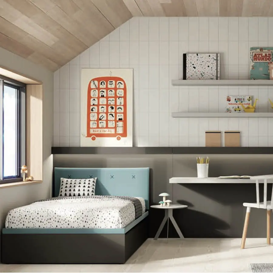 Apostamos por la tendencia de amueblar habitaciones con camas para colchones de 135 cm, si buscas una solución para cubrir las necesidades a largo plazo consulta todas las opciones y módulos para la habitación juvenil.