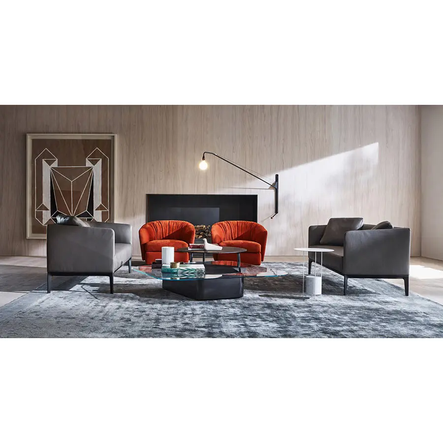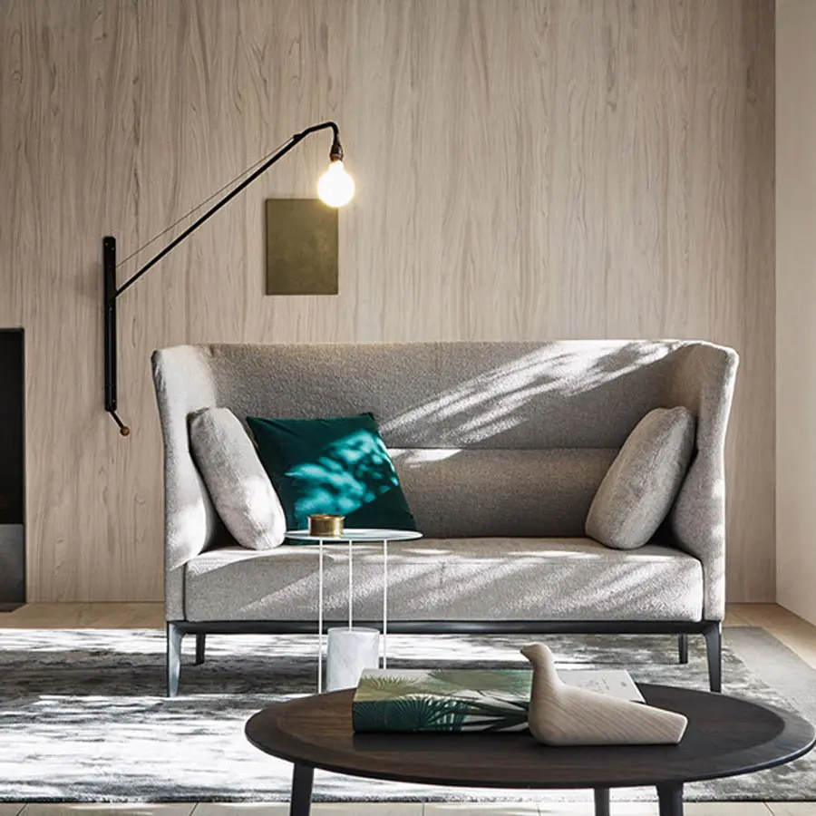 La marca definitoria de la base equilibra las líneas fluidas de los respaldos para combinar ergonomía y elegancia para crear sillas elegantes y esenciales. Disponible en piel o tejido del catálogo de Molteni&C. La base es de aluminio acabado en peltro. Dos opciones de respaldo, Low Sofa de altura 73, y en dos anchos, 160 y 200 cm; y High Sofa, con altura de 109, disponible en dos anchos, 172 y 212 cm. Camden también tiene dispobibles elementos terminales, Chaise-longues y puffs.