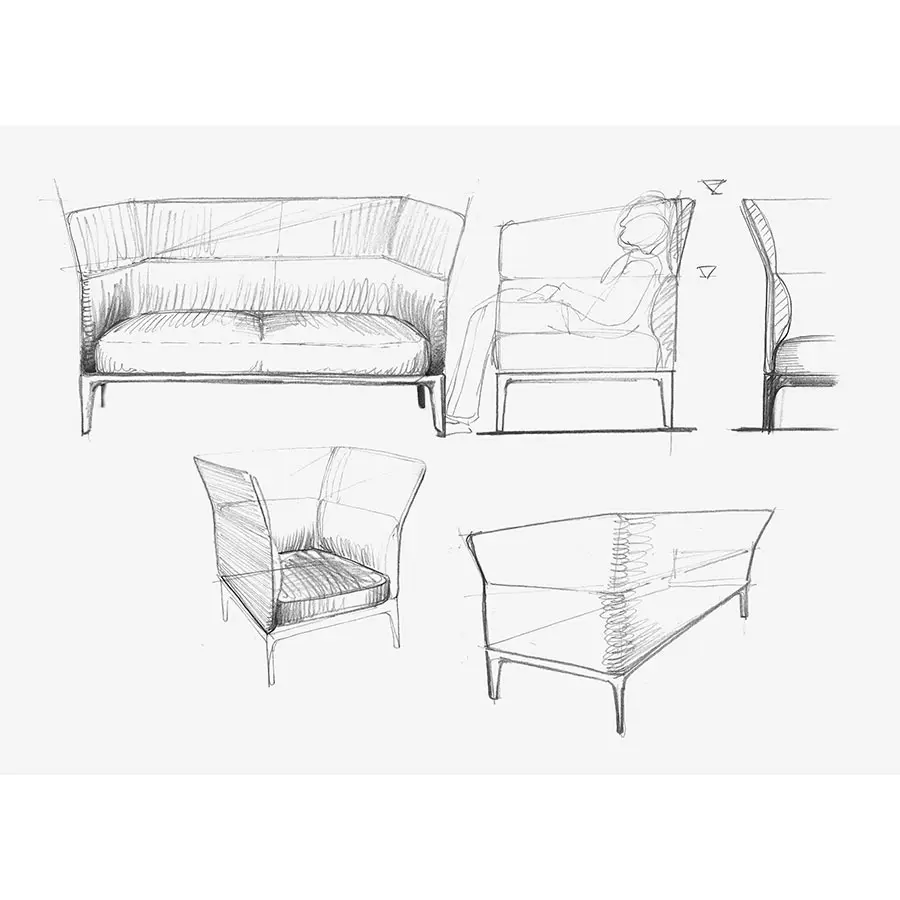 Camden colección de asientos compuesta por sofás con respaldos de diferentes alturas y chaise-longues, se caracteriza por un diseño esencial pero refinado en todos sus detalles. Sus dimensiones son de espacio público y ofrece una amplia posibilidad de acabados, entre los “de hogar” y los que se utilizan en los grandes proyectos. Presenta una tecnología avanzada: estructuras de aluminio fundido a presión, espumados de densidad diferenciada y textiles de alto contenido tecnológico y estético.