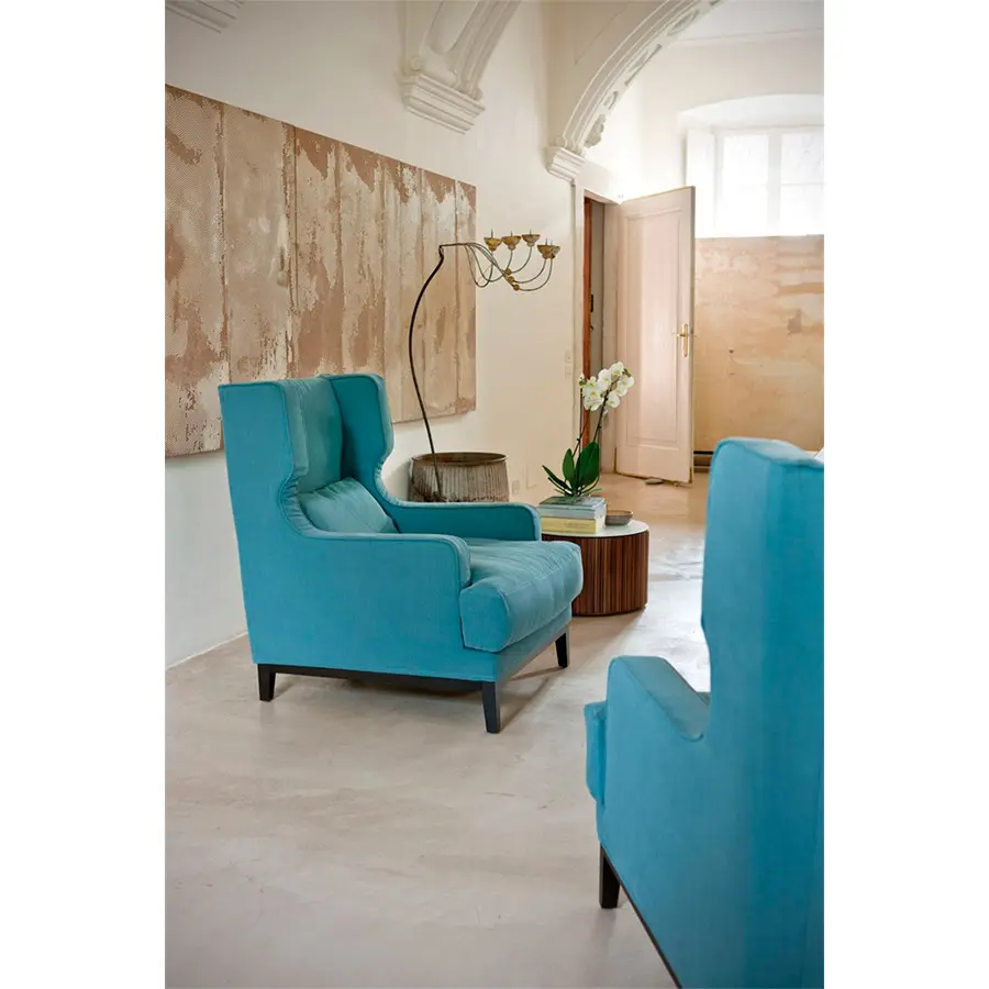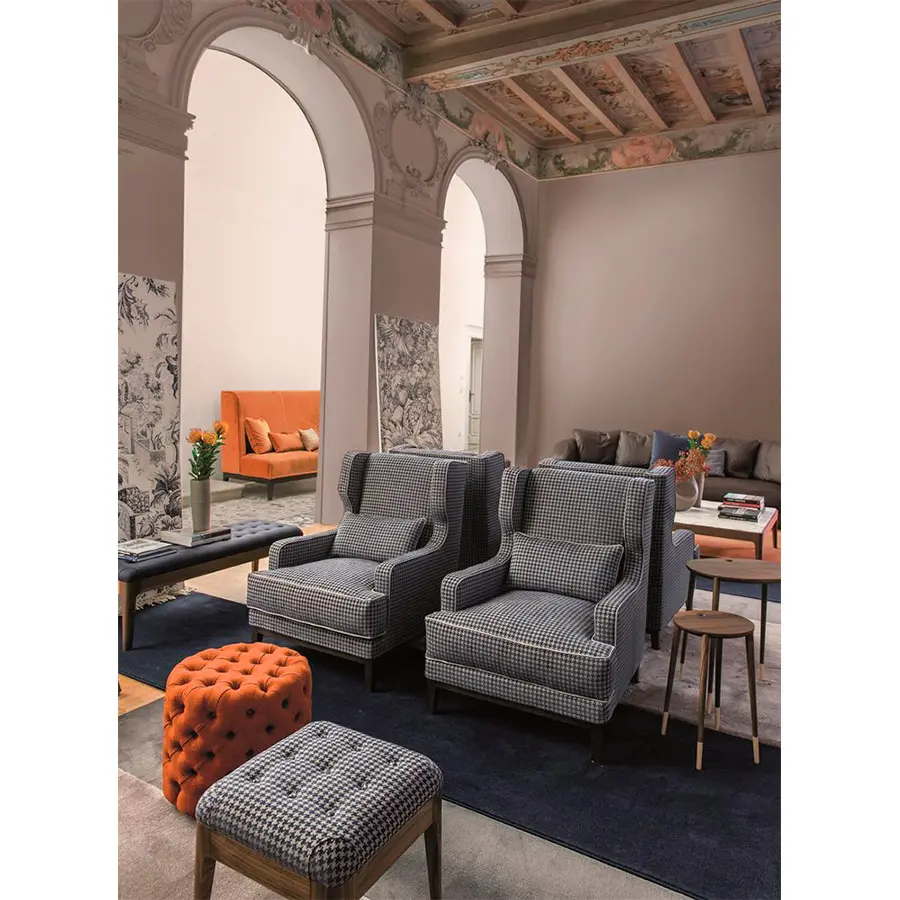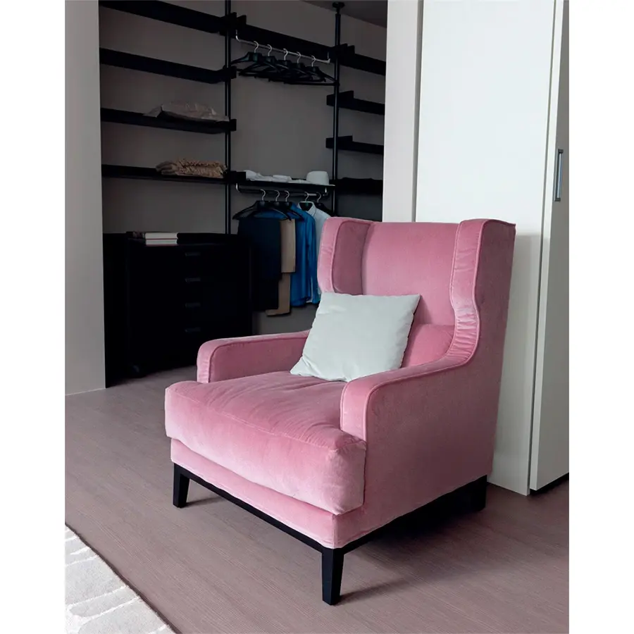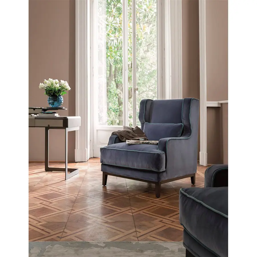 Camille, gracias a sus dimensiones, es una butaca de gran comodidad. Estructura de fresno macizo y revestimiento desenfundable en las telas de la colección. Con cojín para respaldo. Las medidas de Camille son 83x96x98H. Tiene un gran abanico en cuanto a tapizado e incluso tiene opcion de realizar el vivo con contraste. Es una butaca de un diseño completamente atemporal.