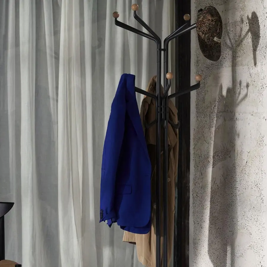 Fundido en aluminio con recubrimiento en polvo y rematado con ganchos esféricos de madera, el colgador es una versión escultórica de un mueble tradicional, que ofrece tres niveles de almacenamiento que permiten exhibir los accesorios con estilo y facilidad. Adaptado para un estilo de vida moderno, el colgador de abrigos Capture es ideal para usar en toda la casa. Una pieza destacada, la percha se puede llenar con artículos esenciales para el día a día o simplemente dejarla sin adornos. Parte de la serie Capture de &Tradition.