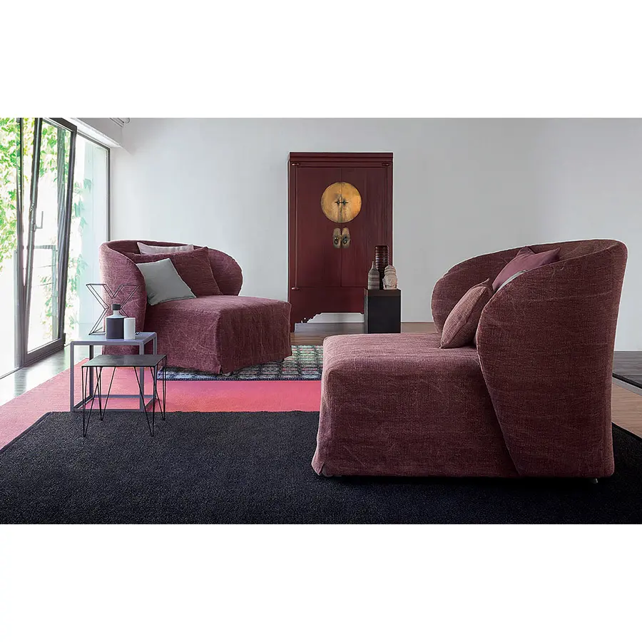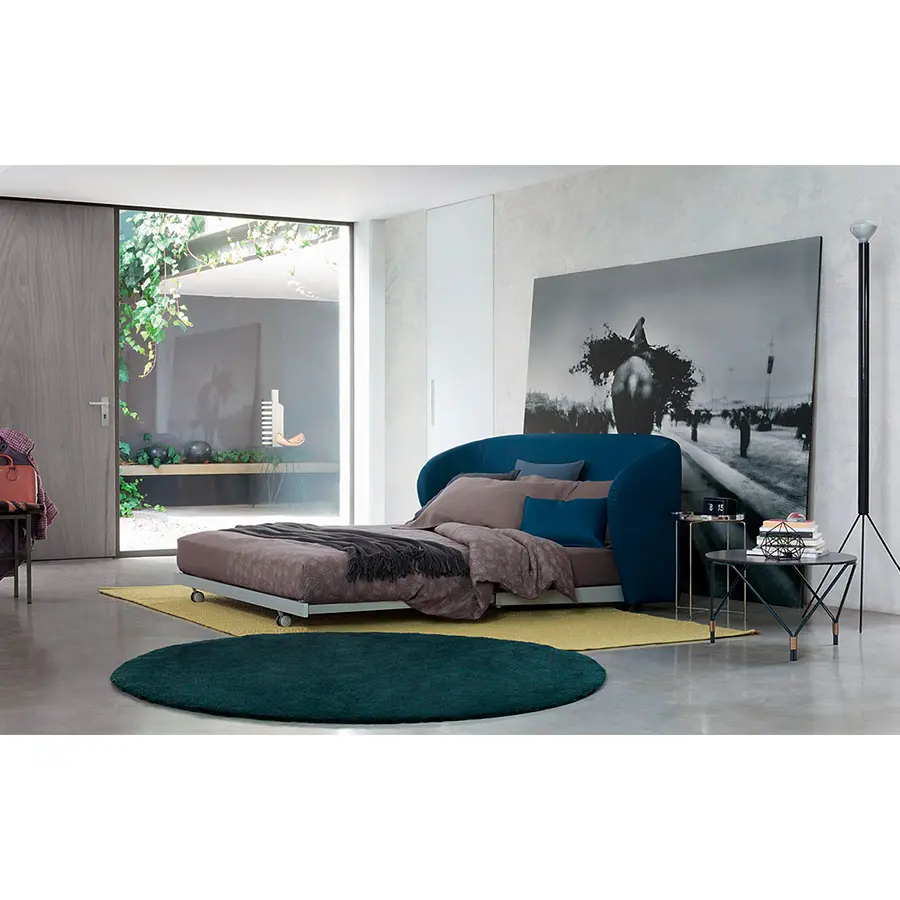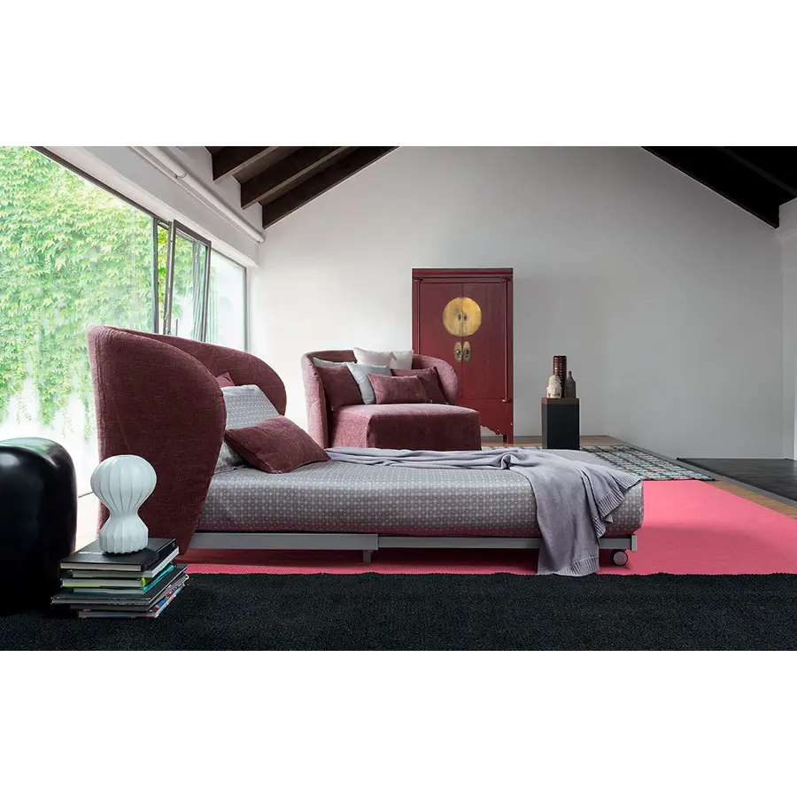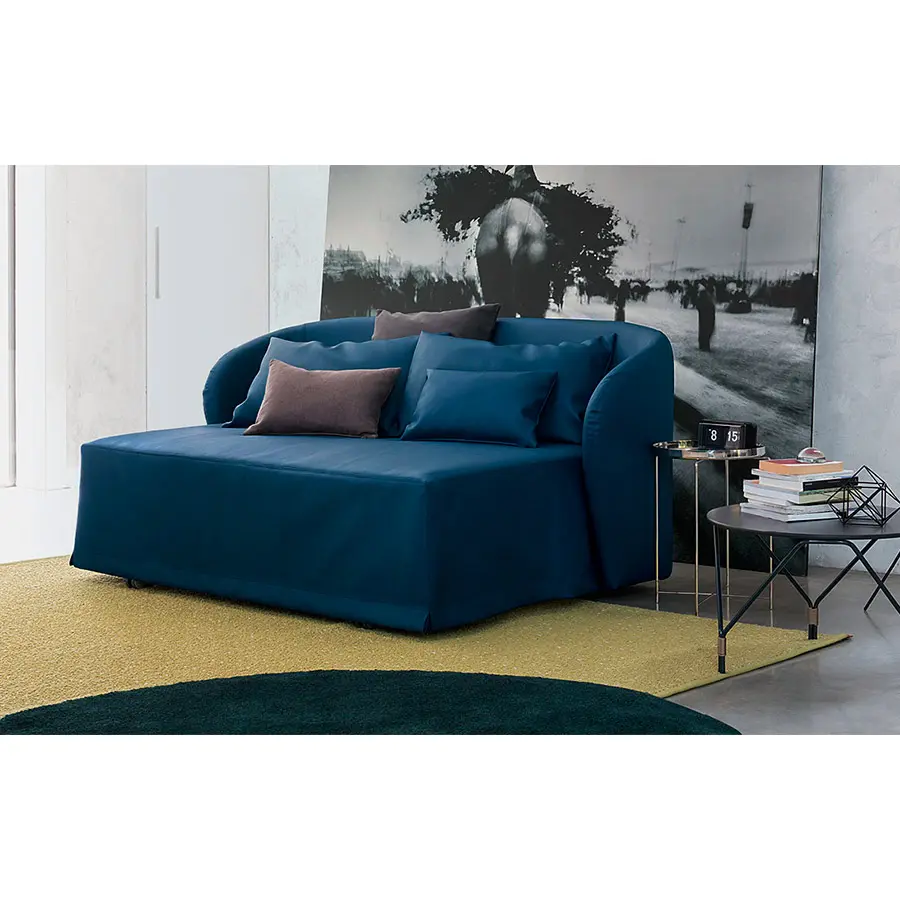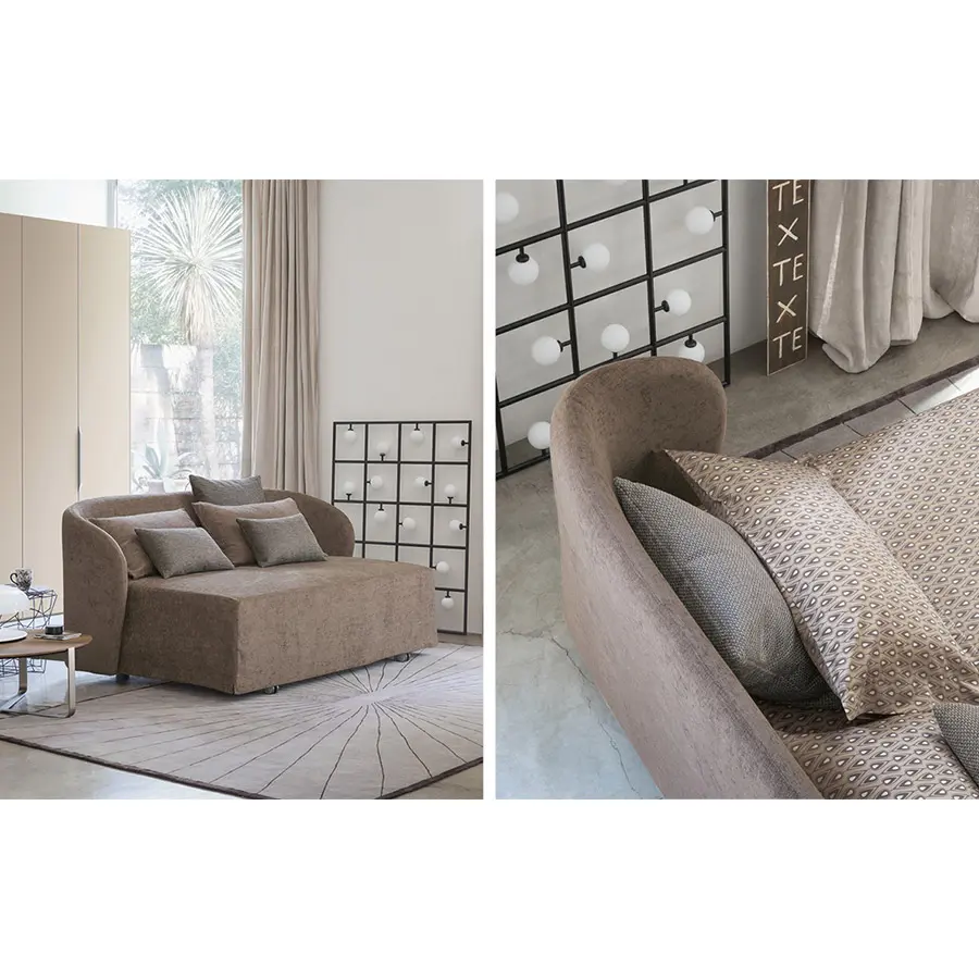 Céline con asiento profundo y extremamente acogedor, puede ser un sillón-chaise longue que se transforma en pocos movimientos en una cama individual (colchón cm. 90×200) o un amplio sofá que se transforma en una cama de matrimonio (colchón cm. 160×200). El revestimiento de ambos modelos, enteramente desenfundable, está realizado en los tejidos de la colección Flou o en Ecopelle y puede ser en una sola variante de color o en dos variantes de color de la misma tela: una para la parte exterior del respaldo y las partes laterales de la funda de asiento, otra para la parte interior del respaldo y la parte superior de la funda de asiento. Ambos modelos están dotados de colchón Memoform o Special que se doblan y se desdoblan sobre la estructura con somier de lamas, que se abre frontalmente gracias a ruedas.