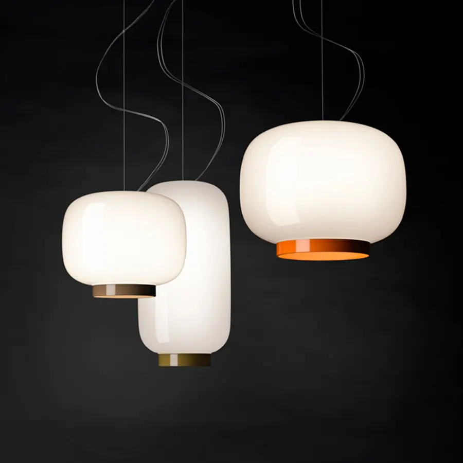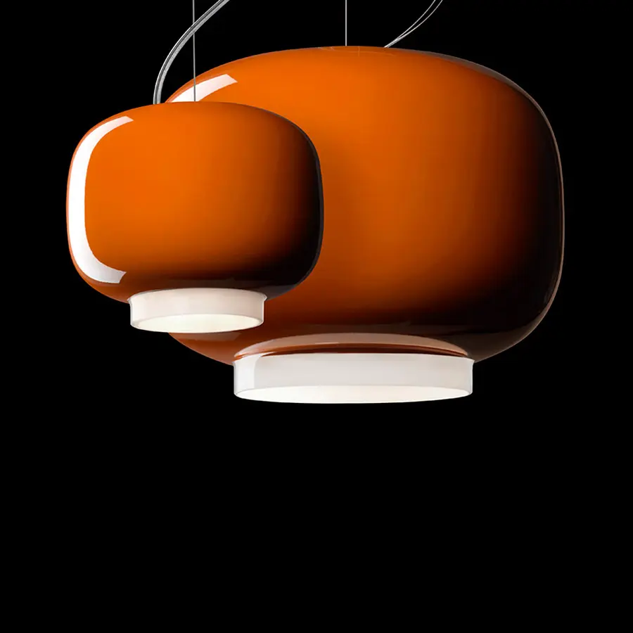 Chouchin es una palabra japonesa que indica los tradicionales y simbólicos faroles de papel y bambú, utilizados como rótulos luminosos fuera de los locales, o bien como amuleto en el exterior de las viviendas. Sobria y elegante, Chouchin une sus conocimientos artesanales con un estilo moderno y esencial. La familia Chouchin está formada por 3 modelos con el cuerpo de color en vidrio mate. Al lado de la primera versión, encontramos una nueva version: Chouchin reverse. Las formas siguen siendo las mismas pero los colores se invierten, el difusor se vuelve blanco mientras el cuello mantiene el color de la forma precedente. No se trata sólo de un nuevo color sino de una nueva luz, un nuevo uso. Chouchin reverse, en efecto, gracias al difusor claro en vidrio soplado, no se limita a apuntar la luz hacia abajo -como la Chouchin original – sino que propaga también una luz brillante, fluida y emocional en el ambiente circundante.