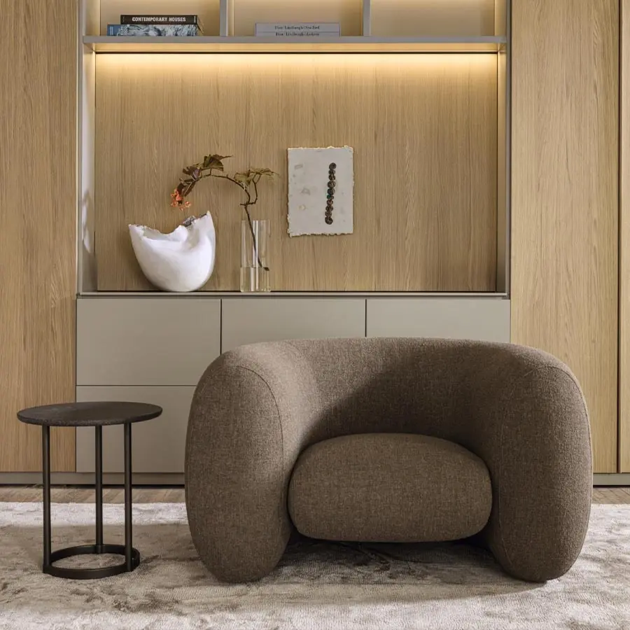 El sillón Cinnamon del diseñador japonés Naoto Fukasawa es una obra maestra del diseño de muebles que combina sin esfuerzo forma, función y comodidad. La forma envolvente desprende un aire de calidez y tranquilidad, invitándote a sumergirte y relajarte.