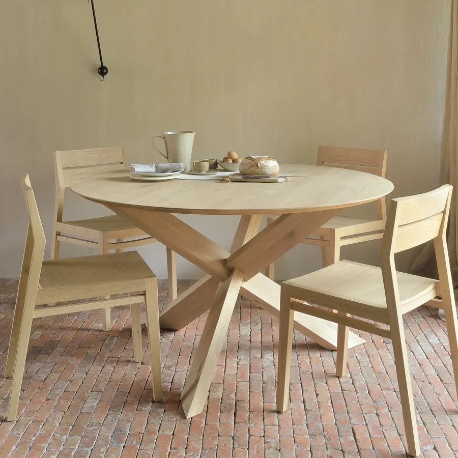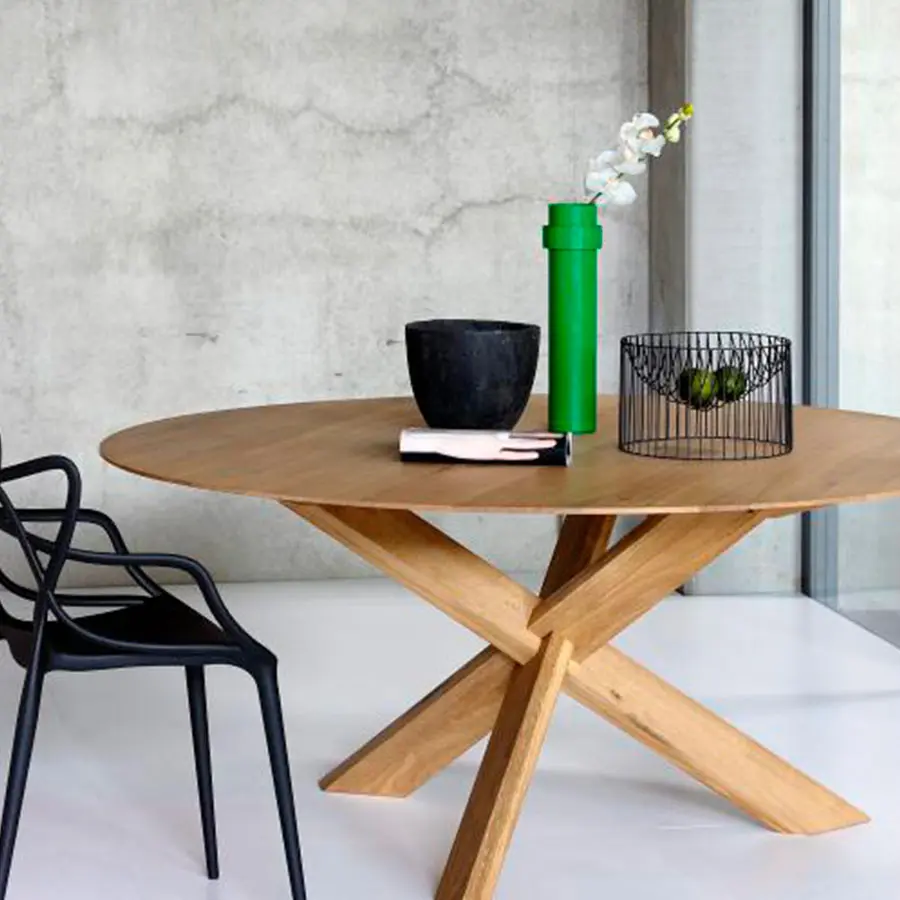 Sin duda la mesa de comedor Circle tiene la capacidad de atraer e invitar a toda la familia a pasar un poco más de tiempo en la mesa, sus patas sólidas se entrelazan en perfecto equilibrio. Disponible en madera maciza de roble.