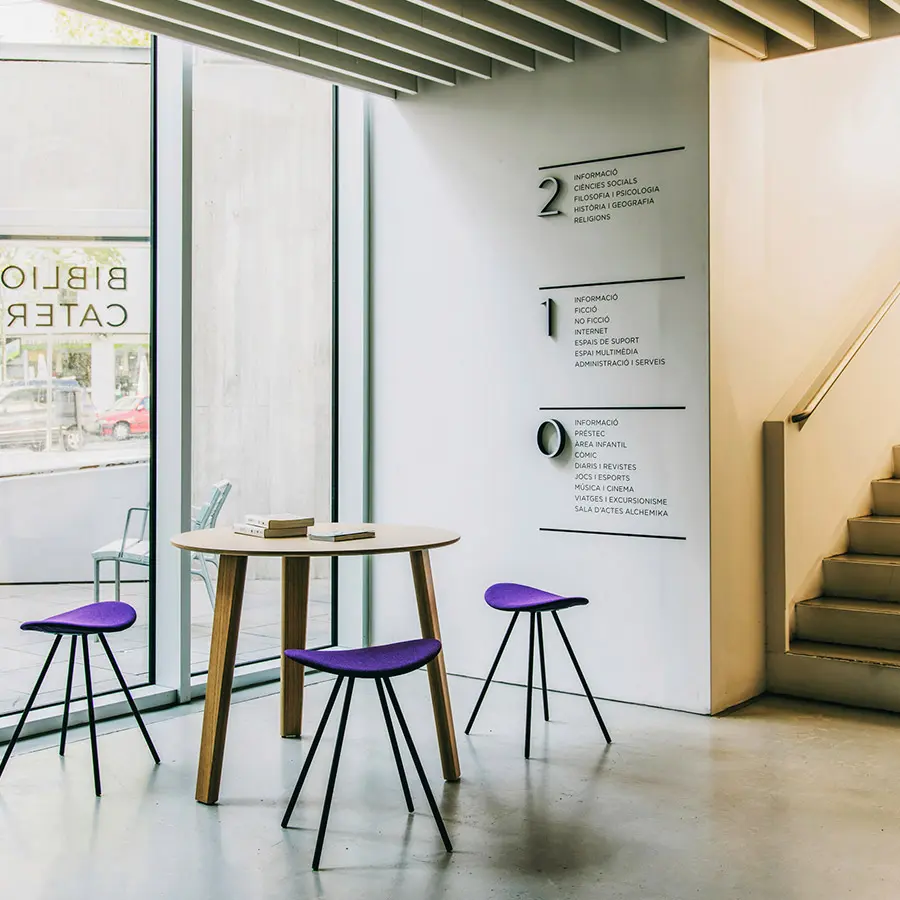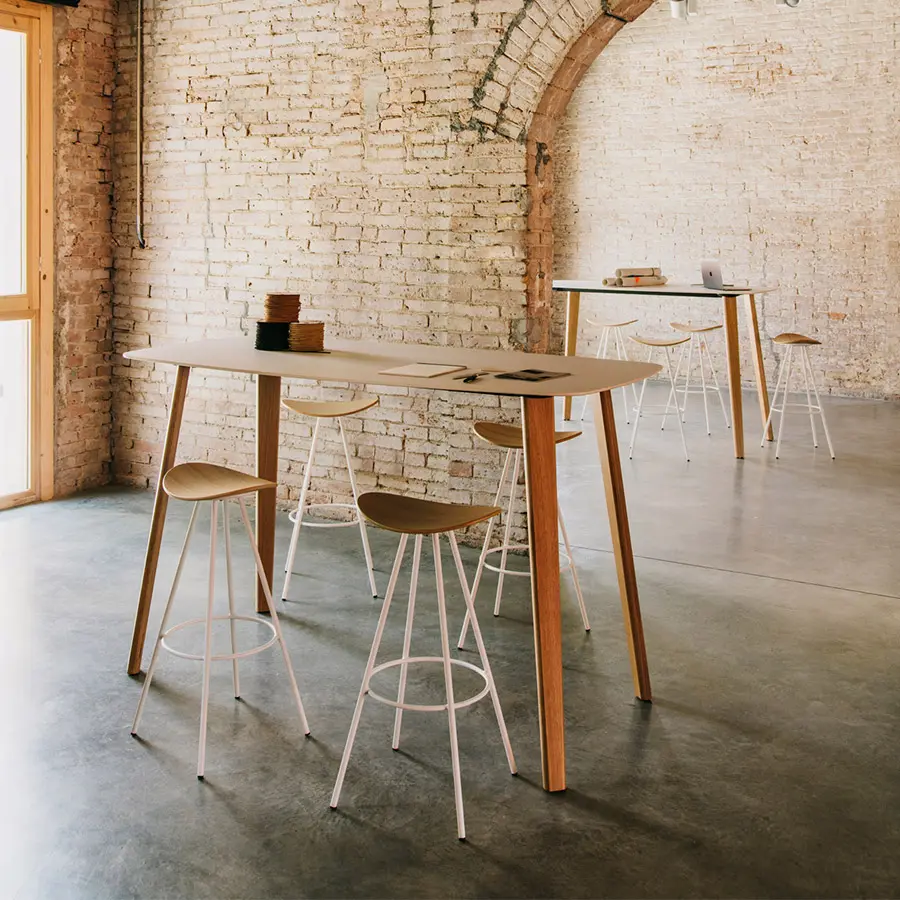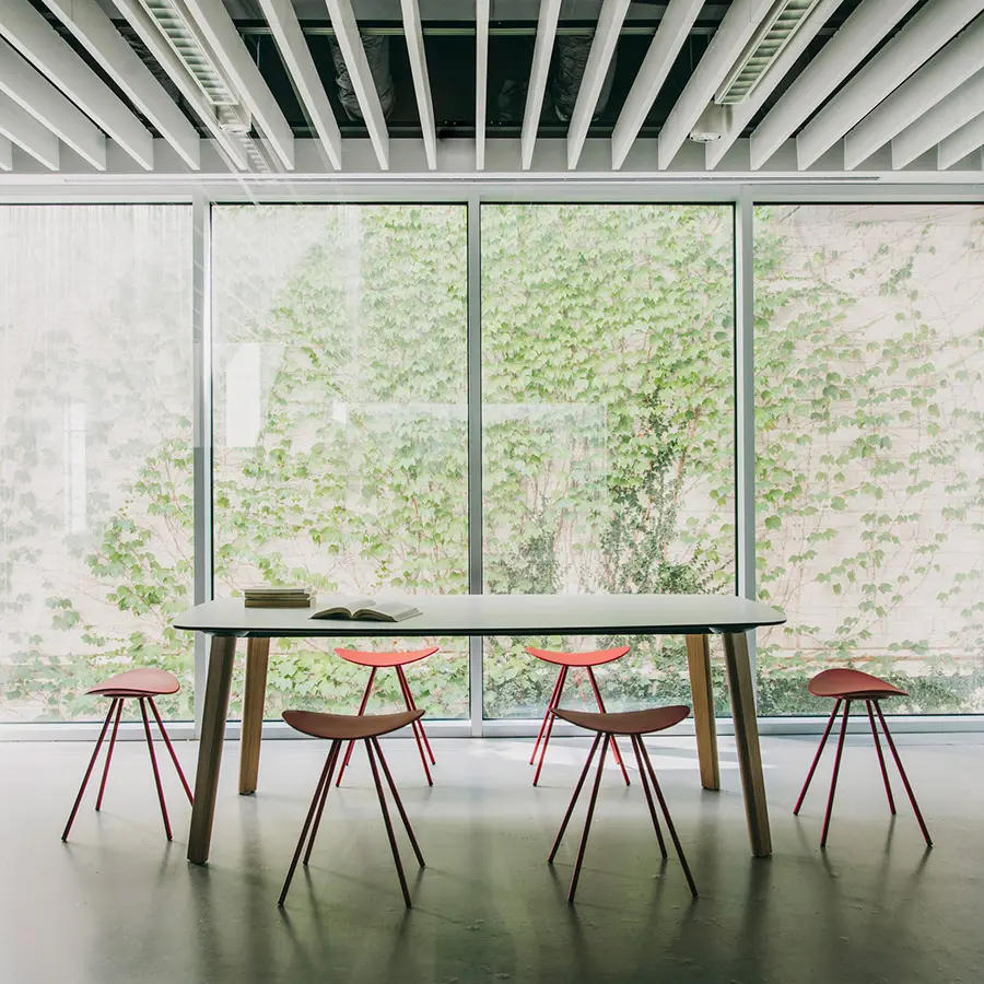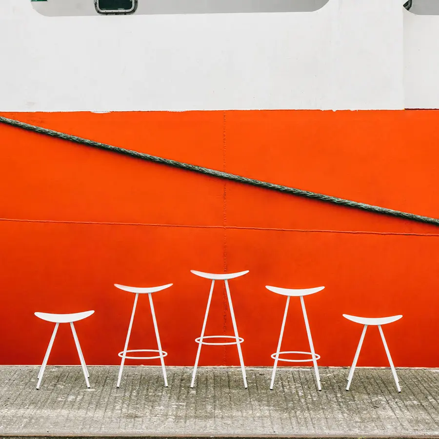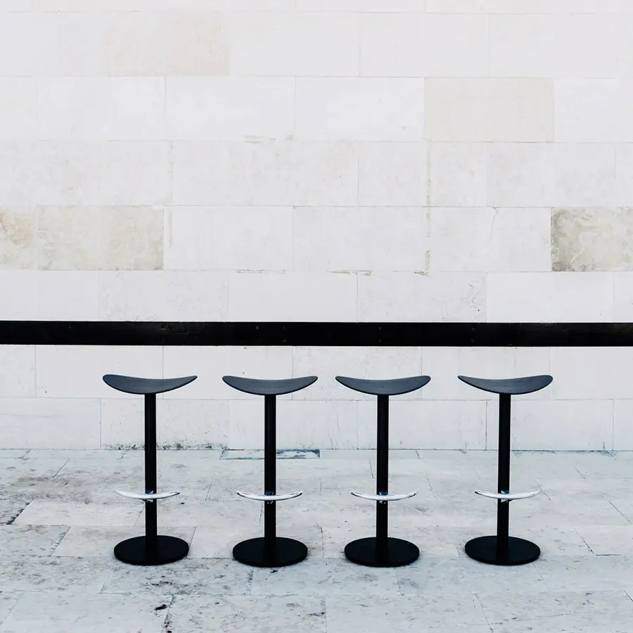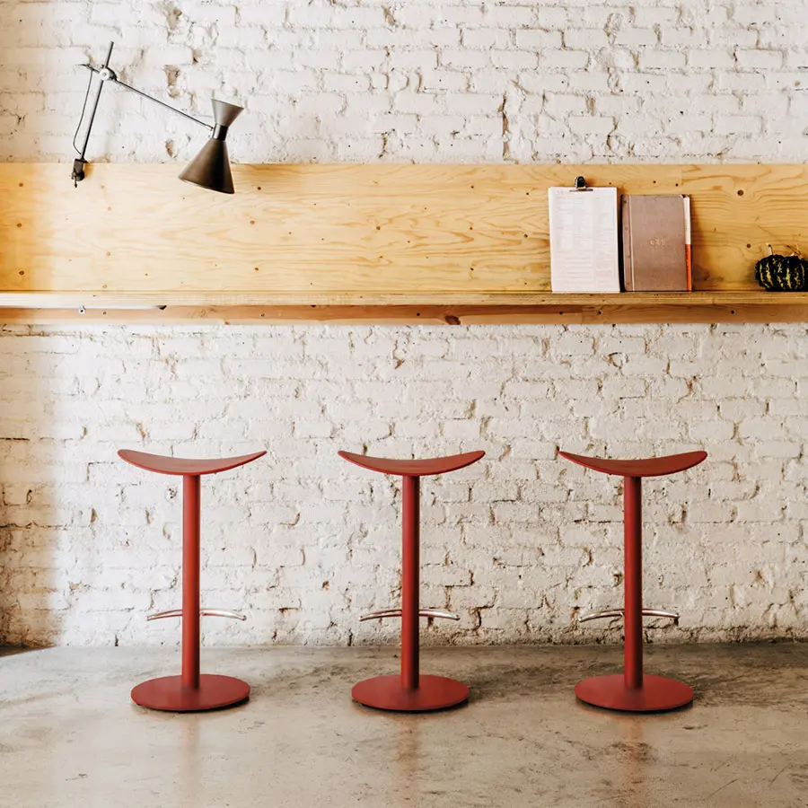 Los taburetes de la colección Coma están disponibles en distintas alturas y estructuras. La familia se caracteriza por su diseño ligero y sus amplias opciones de acabados que se ajustan a todos los ambientes y entornos.
