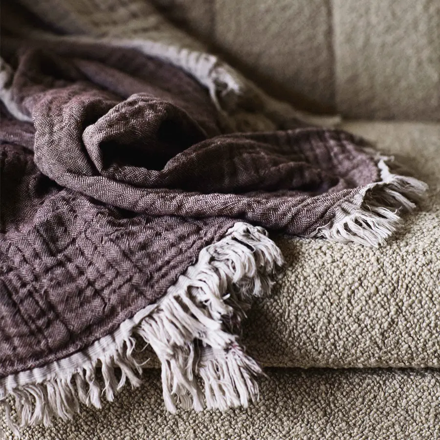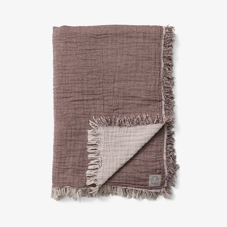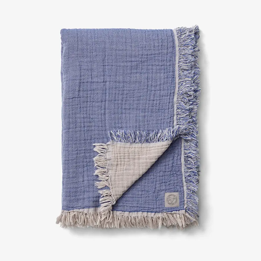 Hecho a mano con algodón 100% orgánico, diseñada por Space Copenhagen, cuenta con hilo tejido en tonos contrastantes y orillo en bruto que recubre los bordes. Está disponible en cuatro colores: Cloud & Milk, Cloud & Blue, Cloud & Burgundy y Cloud & Slate.
