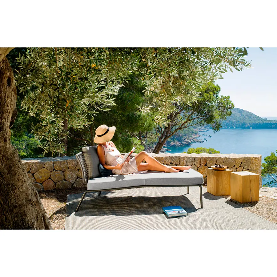 Esto requiere de una gran maestría, ya que, aunque las esquinas del tubo están dobladas a 90°, mantienen une forma redonda. El respaldo solo está unido a la estructura en dos puntos, por lo que parece estar flotando. El tejido con estructura abierta evoca la secular tradición del tejido.