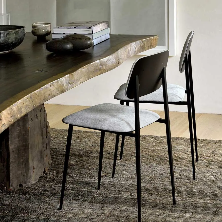 Una silla con estructura de metal ligera y estilizada con un diseño minimalista. El equilibrio entre solidez y suavidad, genera una silla de comedor elegante y cómoda que se adapta a cualquier interior.