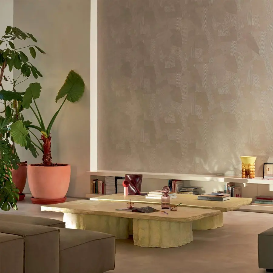 Inspirado en el trabajo tradicional del yeso, cientos de surcos finos reflejan el movimiento de la mano en este vinilo en relieve, creado en colaboración con Callidus Guild.