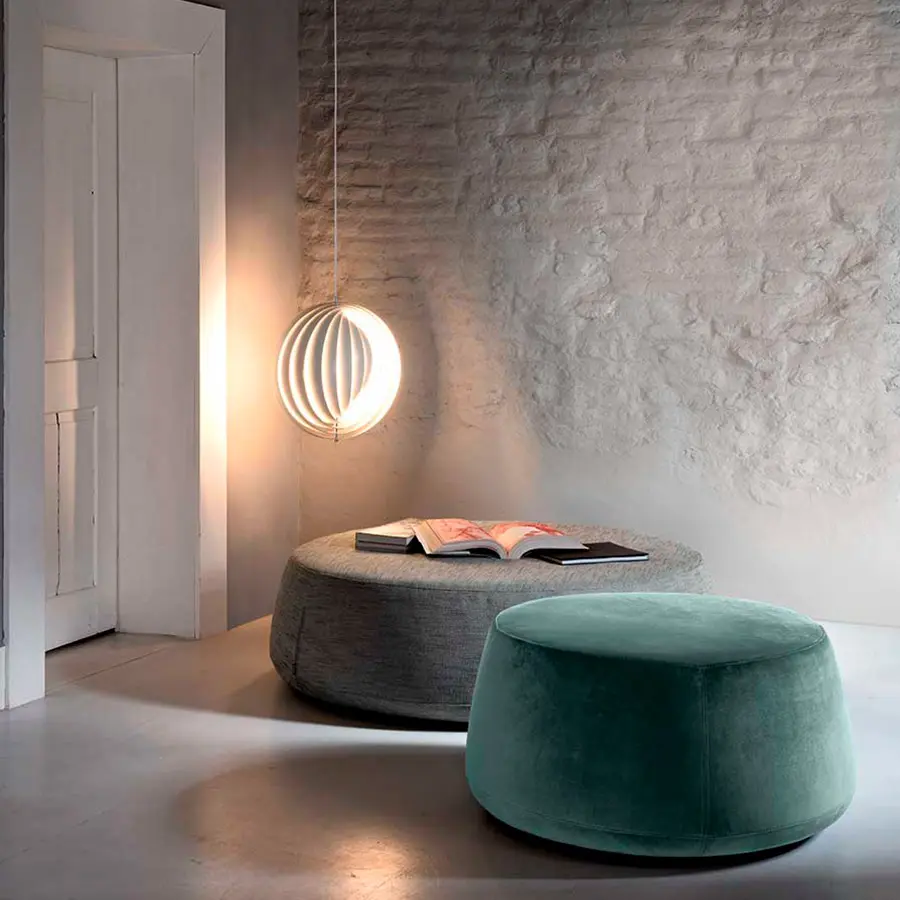 Denny es un puff tapizado y desenfundable (en las versiones de tejido y eco-piel) disponible en tres tamaños. Caracterizado por unas formas redondeadas y ahusadas, sirve de asiento o cómodo apoyo.