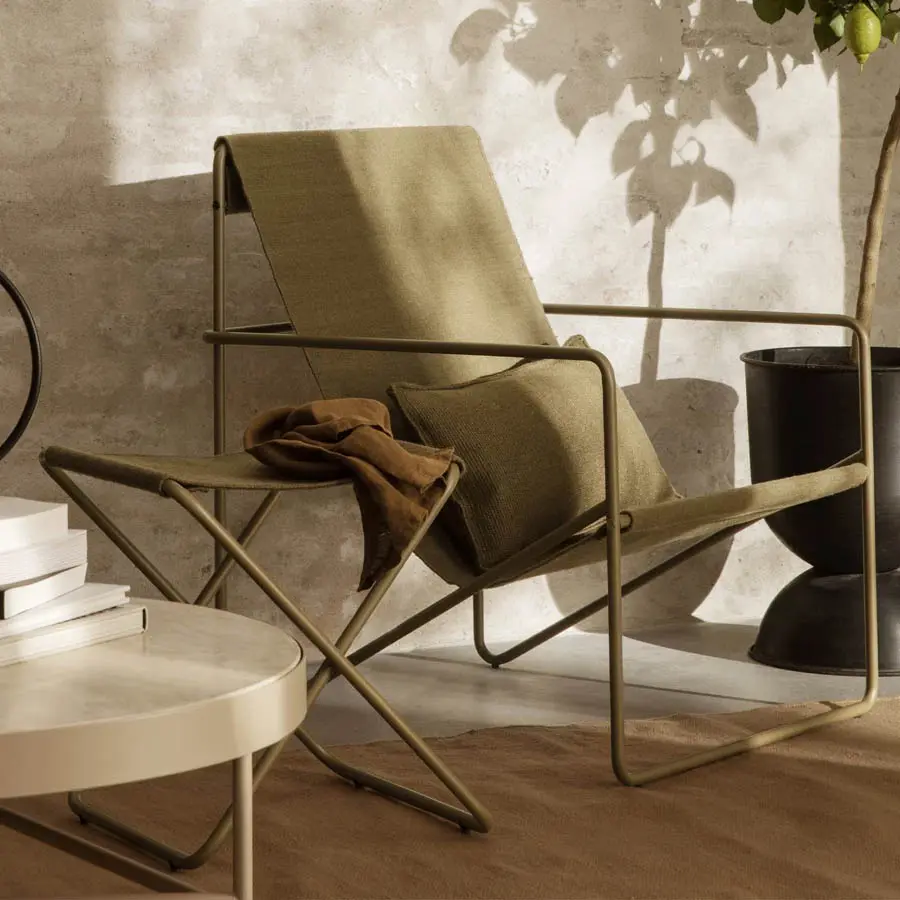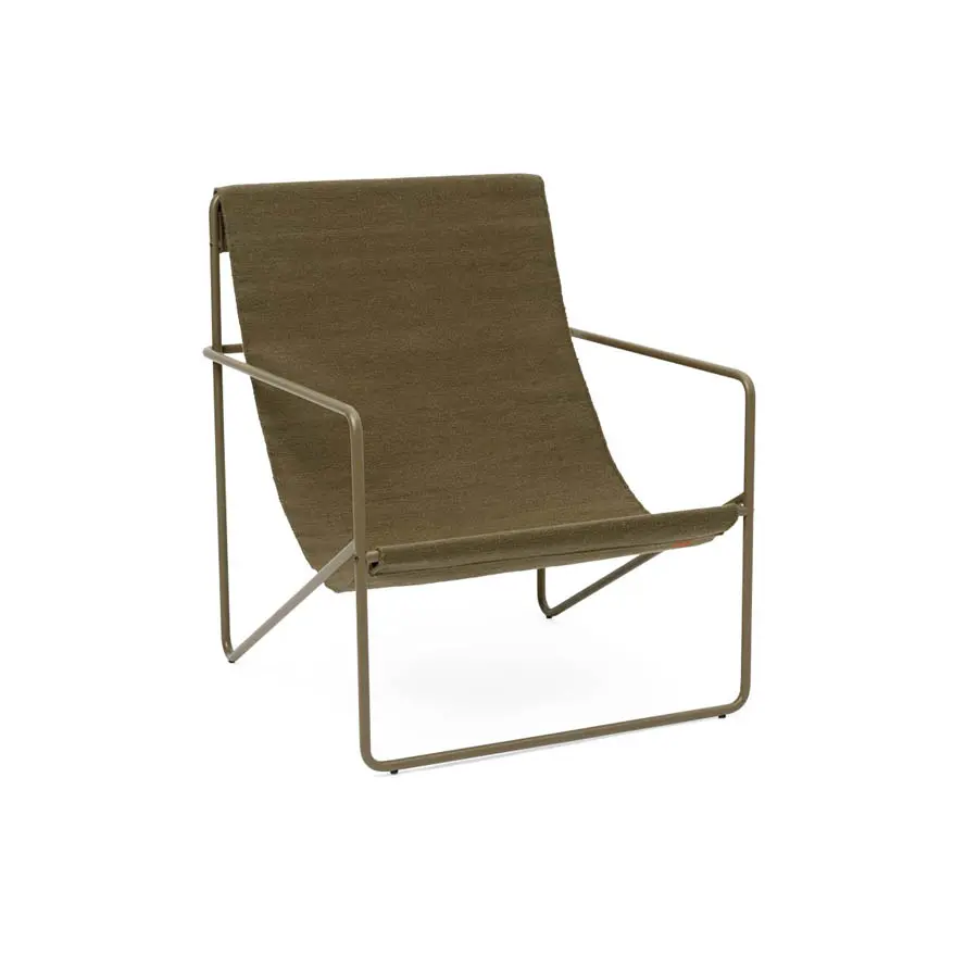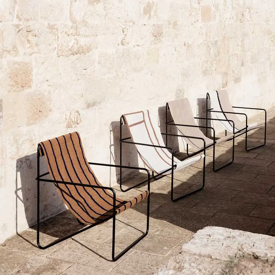 Un sillón modernista con un perfil elegante, la Desert Lounge Chair está fabricada con un armazón tubular de acero recubierto en polvo, que sostiene un asiento de textil tejido a mano intercambiable, hecho completamente de plástico reciclado post-consumo transformado en hilo de PET. Adecuada tanto para interiores como para exteriores, el diseño de la silla invita a la relajación.
