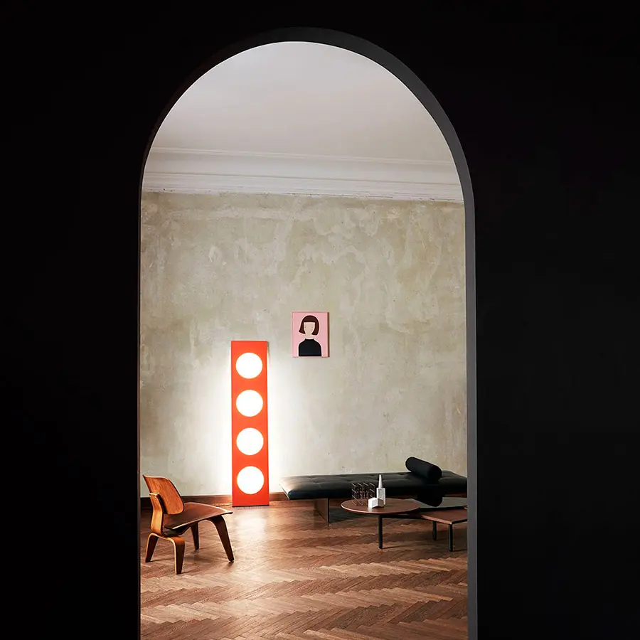 Uno de los proyectos más icónicos de la historia Foscarini, revisitado en función de las nuevas oportunidades ofrecidas por la tecnología LED. Se trata de Dolmen, la lámpara diseñada por Ferruccio Laviani a mediados de la década de los 90. Una pieza de valor simbólico fuerte, expresión de un concepto de lámpara-escultura que no pasa nunca desapercibida gracias a la excepcionalidad de su forma monolítica, con cuatro grandes orificios similares a los portillos de un barco, y a su insólita colocación apoyada en la pared, además de su colocación en suspensión. La utilización de una fuente luminosa de LED con regulador de luz, con una luz cálida y uniforme, ha permitido adaptar el diseño de la lámpara, que se vuelve más fino y con una limpieza estética mayor. Los acabados propuestos transforman su personalidad, sugiriendo emociones y ambientaciones distintas: anaranjado mate de sabor industrial o aluminio cepillado mate de inspiracion hi-tech, o bien un cálido color bronce. En todas las versiones, Dolmen regala al ambiente en el que se coloca su carácter atrevido y su personalidad inmediatamente reconocible.