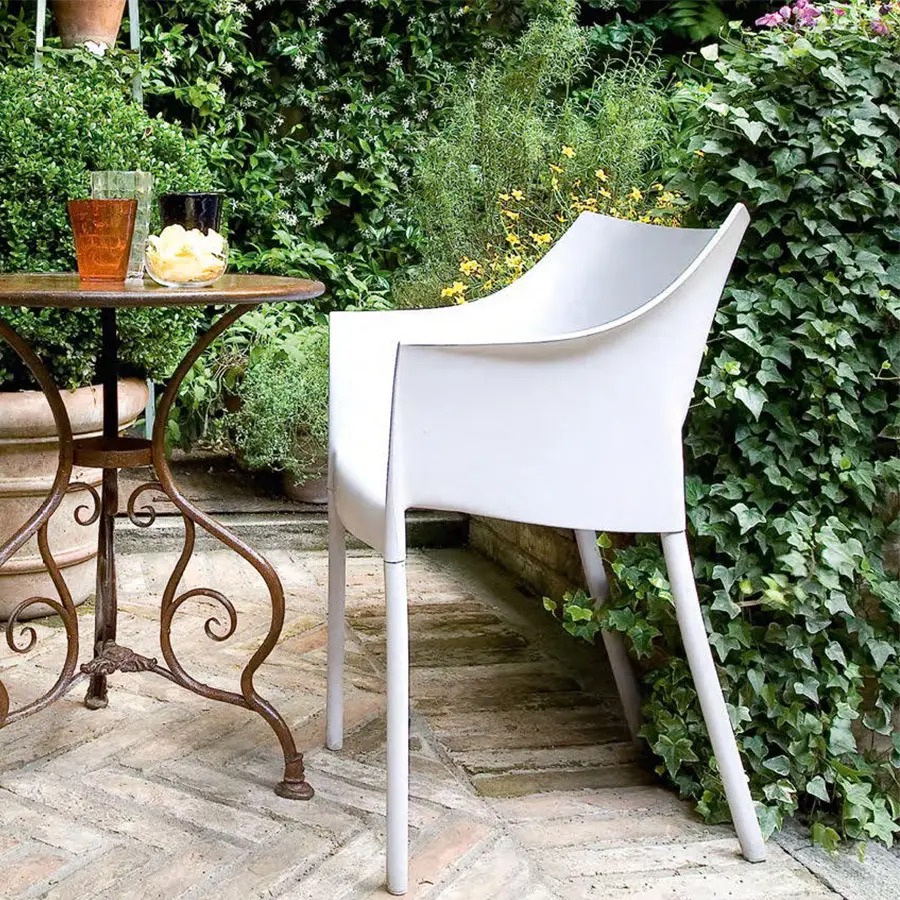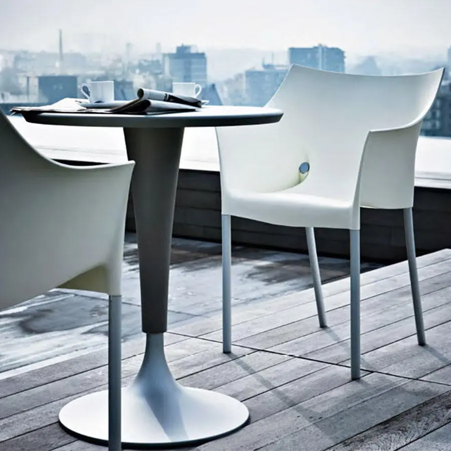 El sillón pequeño Dr. NO es un clásico de Kartell, conocido por su combinación perfecta de funcionalidad y belleza. El Dr. NO no sufre cambios de temperatura, es apilable hasta cuatro elementos y se caracteriza por su cómodo asiento envolvente, elegancia de diseño, practicidad, facilidad de limpieza y amplia gama de colores. La selección de color tiende a tonos pastel. Las soluciones formales, los materiales y la practicidad le permiten al Dr. NO vivir al aire libre y representan una excelente propuesta de contrato.