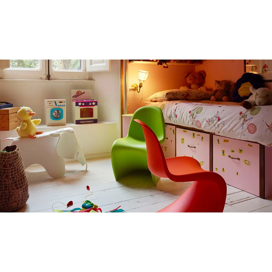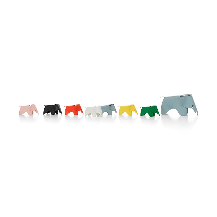 El elefante que Charles y Ray Eames crearon en 1945 en chapa de madera está ahora disponible en plástico de varios colores; de esta manera puede utilizarse también como juguete y no solo como objeto decorativo para la habitación de los niños.