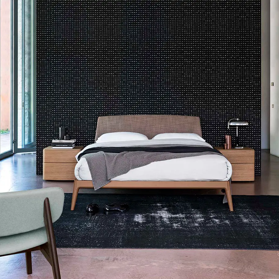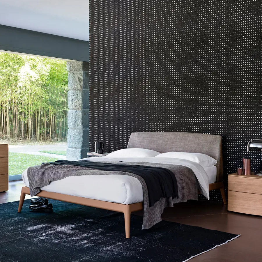 Posibilidad de revestir el cabecero en tejido o piel, diferentes opciones de madera para la estructura.