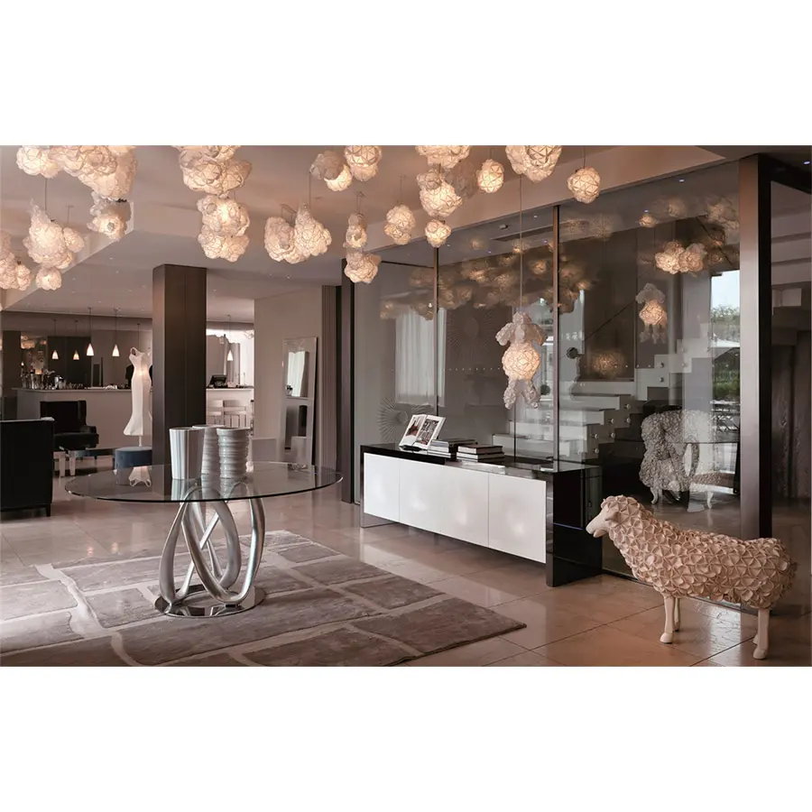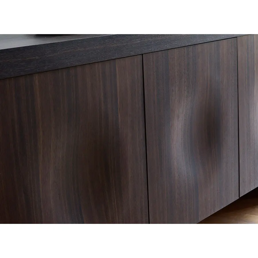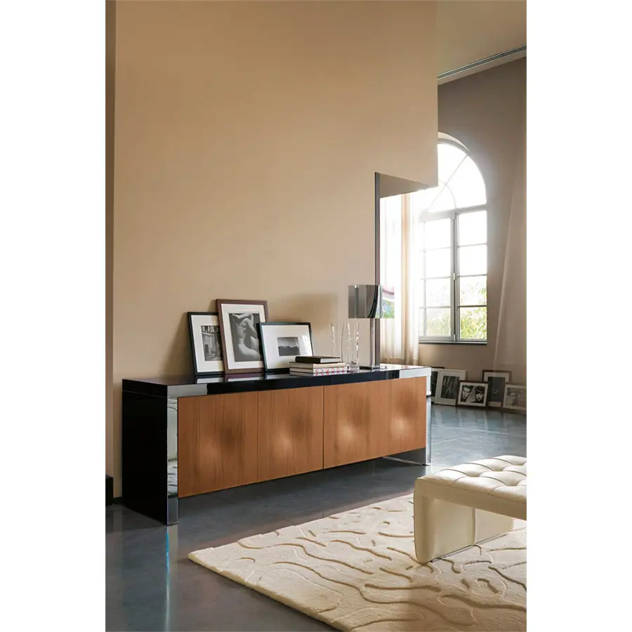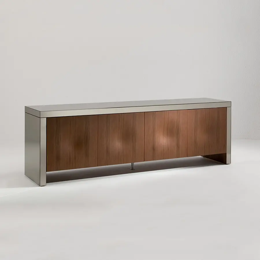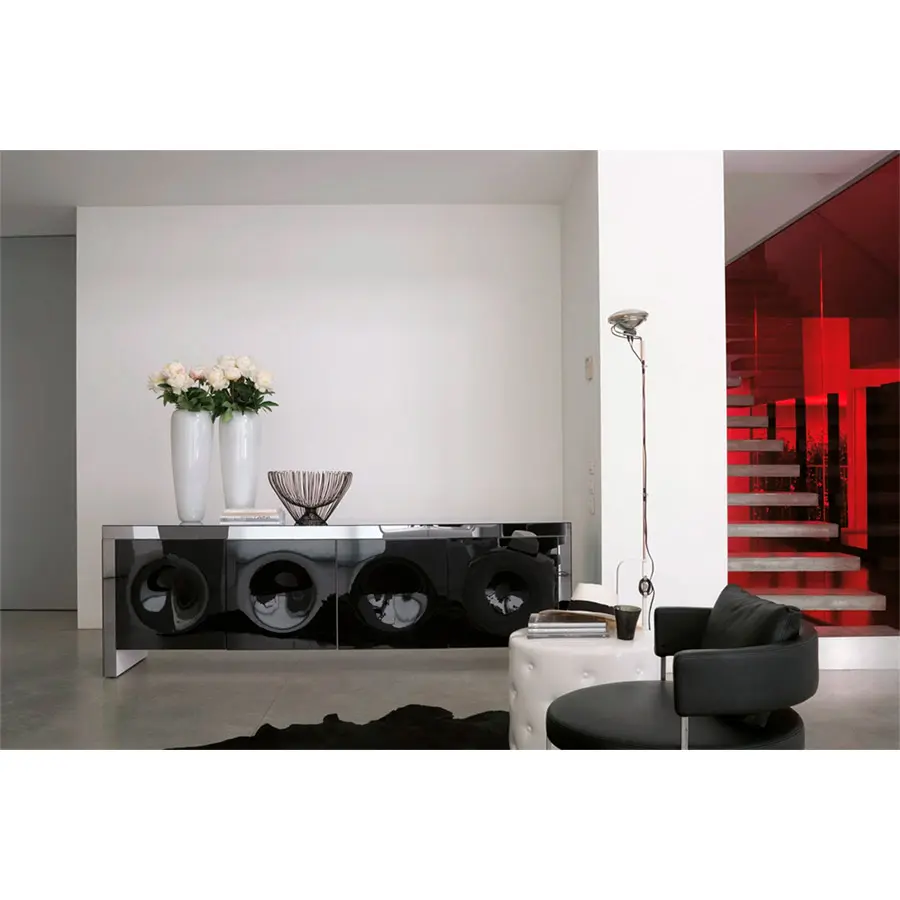 Aparador con estructura en espejo y puertas de madera o todo revestido en espejo. Puertas con bisagra automática. El detalle curvado de sus frentes le da ese aire distintivo que tanto le caracteriza. Empire también se puede hacer con la estructura en madera, está disponible en distintas medidas para adaptarse a los espacios y a las diferentes exigencias de las casas. Anchos 170x52x75H y 233x52x75H, tres y cuatro puertas respectivamente.