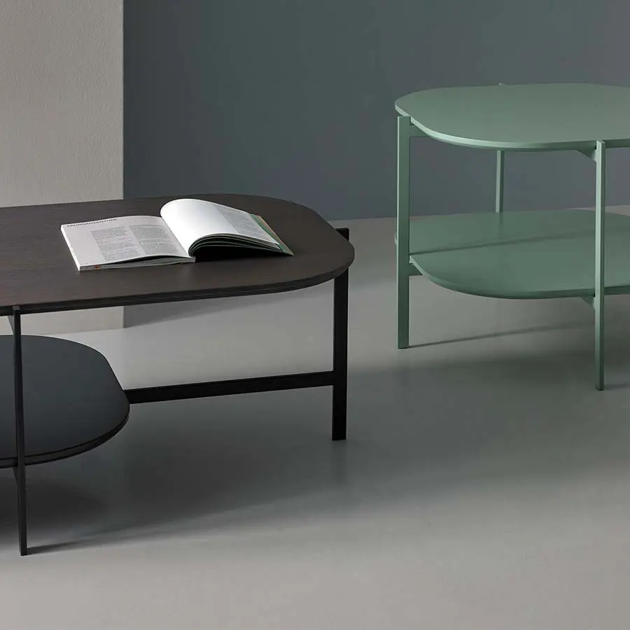 La mesa de centro EXO se caracteriza por tener una estructura metálica que forma parte esencial del diseño. Su perfecta combinación con los materiales de la tapa y el estante, conforman un conjunto elegante y singular. Las diferentes medidas de la mesa y los acabados de la tapa facilitan la adaptación de EXO tanto en hogar como en instalaciones. Una solución muy funcional y de ligereza visual, que eleva el nivel de cualquier espacio. Está disponible en tamaños diferentes que permiten que se adecúe a las necesidades de cada estancia. Debido a la gran variedad de acabados que ofrece tiene una fácil integración en cualquier interior.